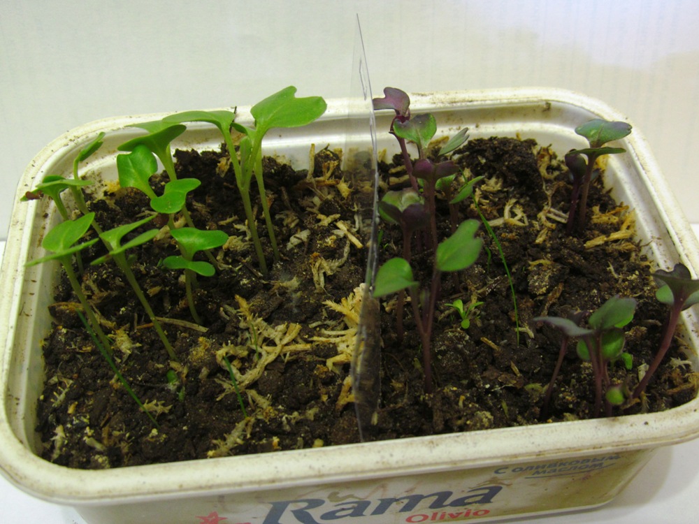 Нина! А у меня наоборот. В прошлом году сеяла фиолетовый. Из этого же пакета посеяла в этом году. Всходил фиолетовый, а потом семядольки окрасились в зеленый цвет. Думаю, что в результате будет опять фиолетовый.