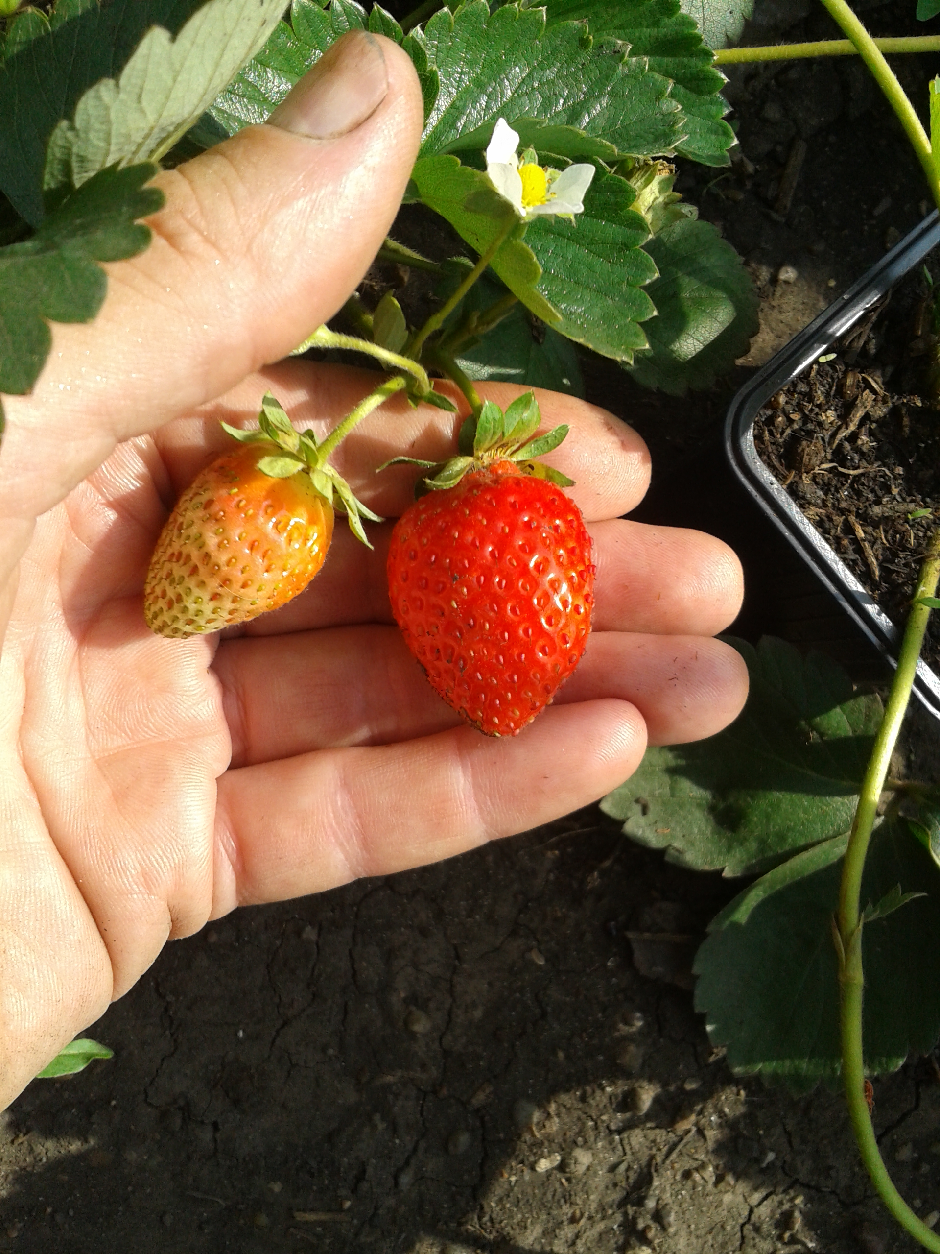 1) Альба - распространённый ранний промышленный сорт. На Юге промышленники, выращивающие раннюю ягоду, делятся на тех, кто выращивает Клери и "Албанцев", выращивающих Альбу. Сорт урожайный (по литературным данным), менее подверженный заболеваниям, чем Клери. Вкус ягоды ярко выраженный - хорошо чувствуется и сладость и кислинка. Впрочем, эта "выраженность вкуса" может быть и недостатком: при нехватке тепла сладость может пропасть, а кислота остаться и ягода станет кислой - первая ягода у меня выросла такая, дальше пошло лучше. Усы сорт образует не плохо.