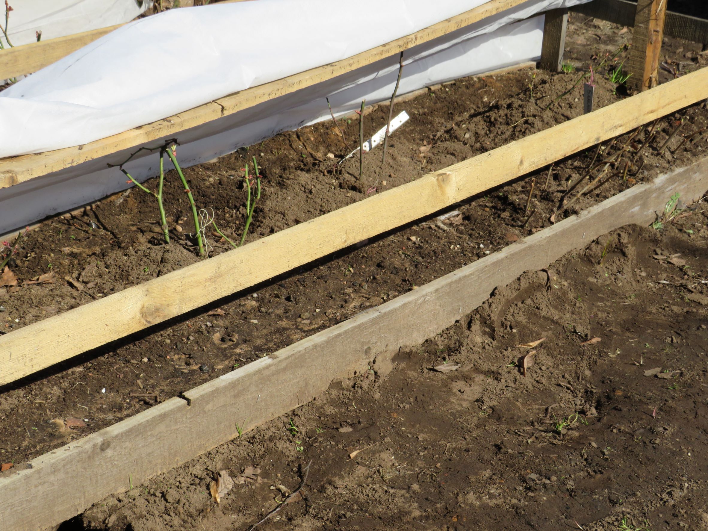 Завязки на моих мешках привязываю к стеблям роз , чтобы их не сдуло .