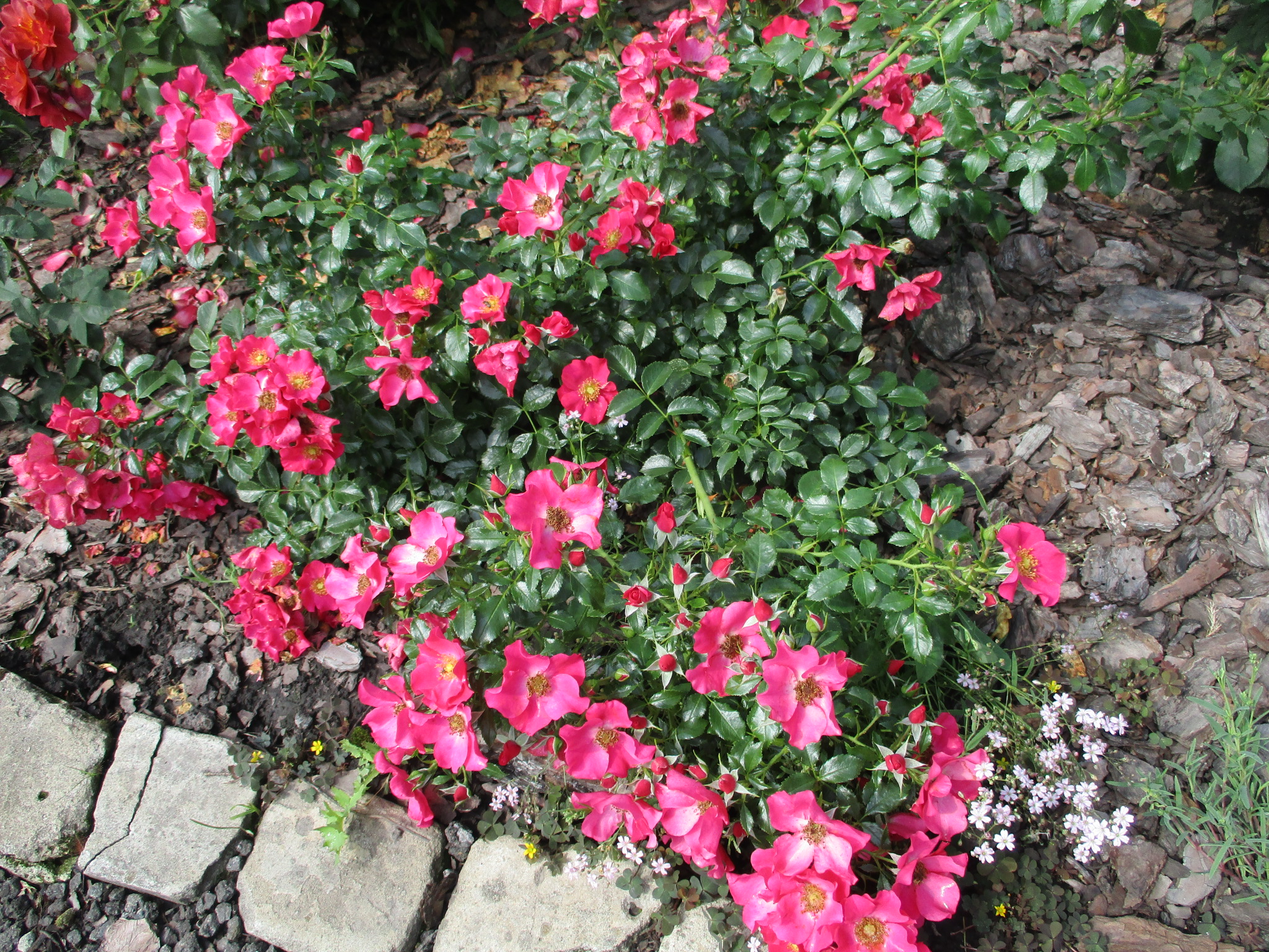 У меня розы прошлого года посадки радуют своим начавшимся цветением, много бутонов на кустах. Первые хорошо цветут Моцарт, Аспирин.