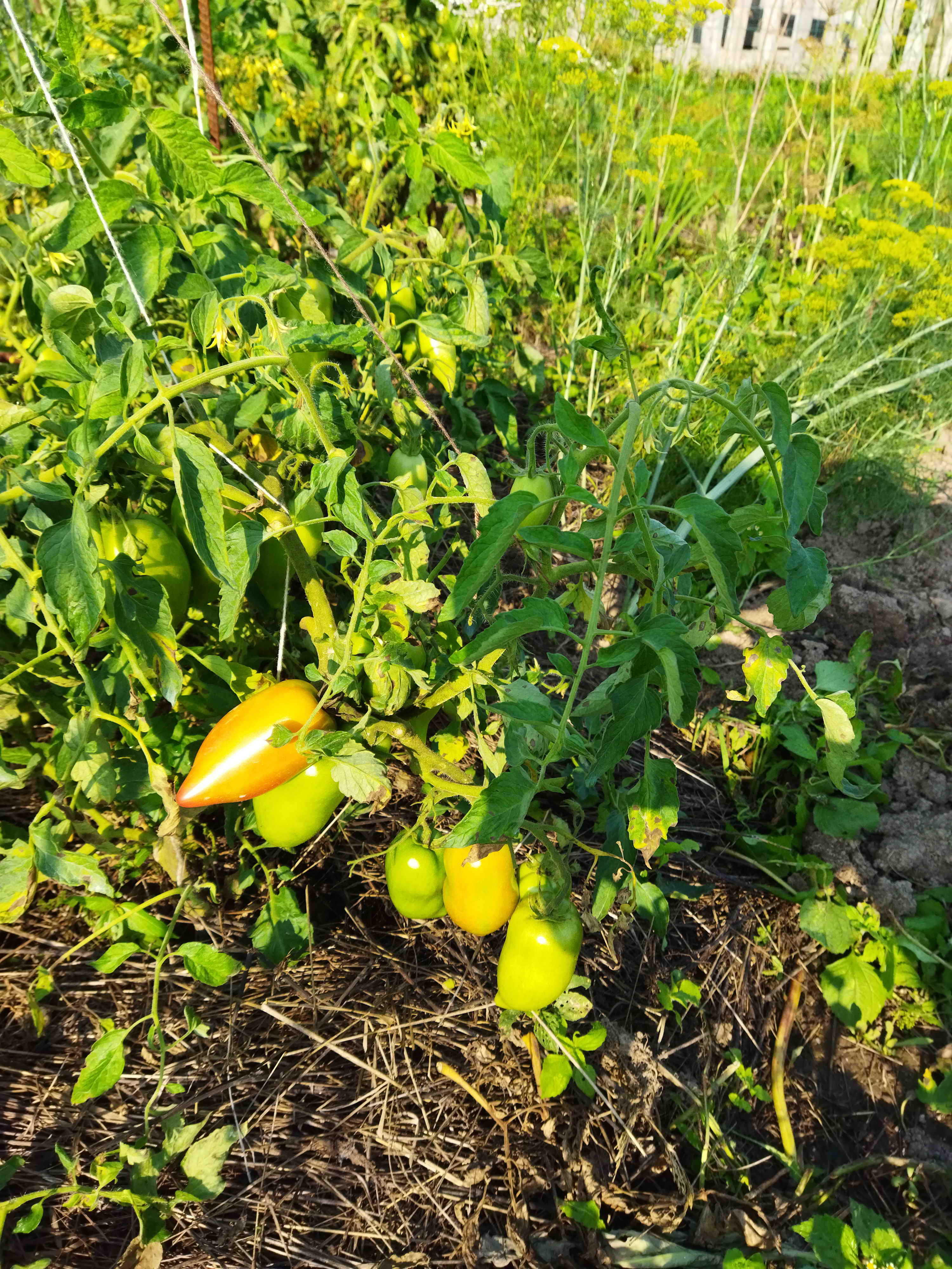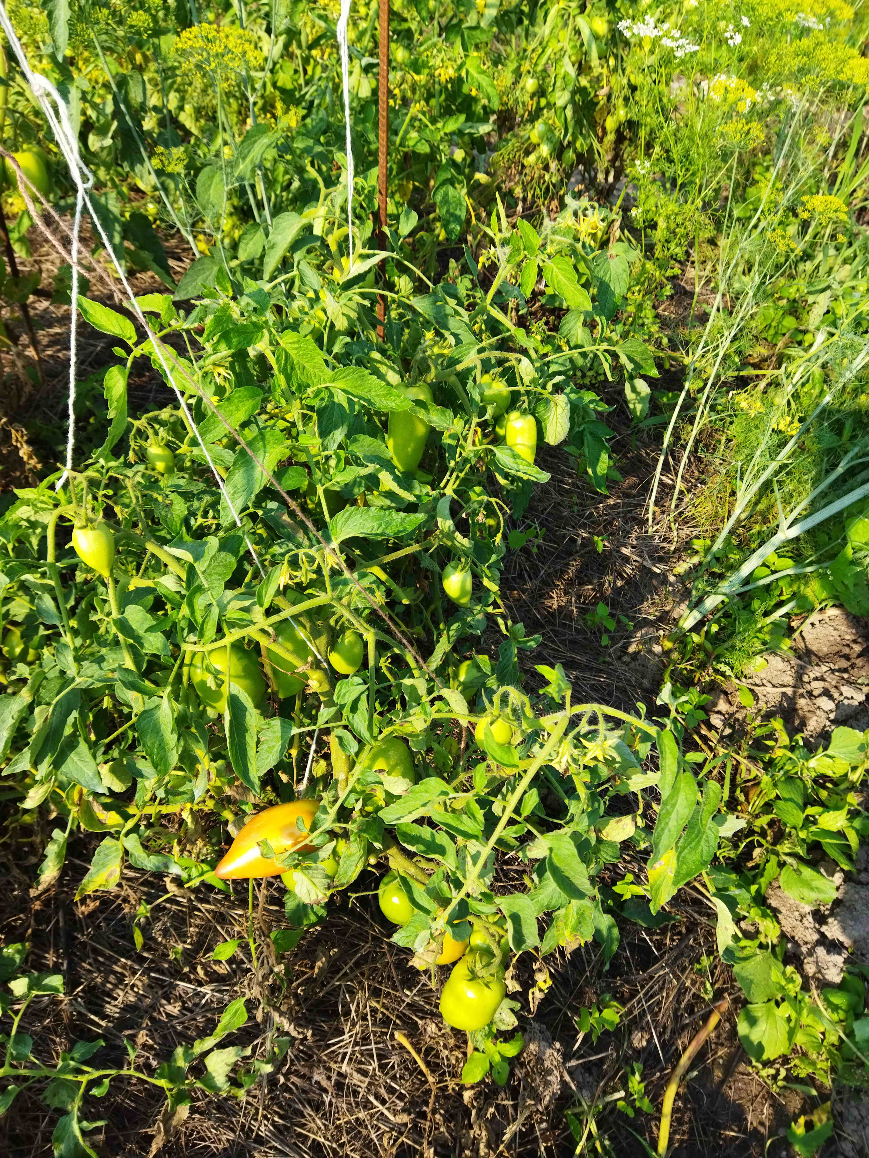 Пинк Хорн "плаксивый", первый сейчас окрашивается, попробую, но куст хиляк. Пинк Буш молодец, навязал хорошо, тоже скоро попробуем. В общем, на еду хватит. Что-то в этом году пошло не так с помидорами