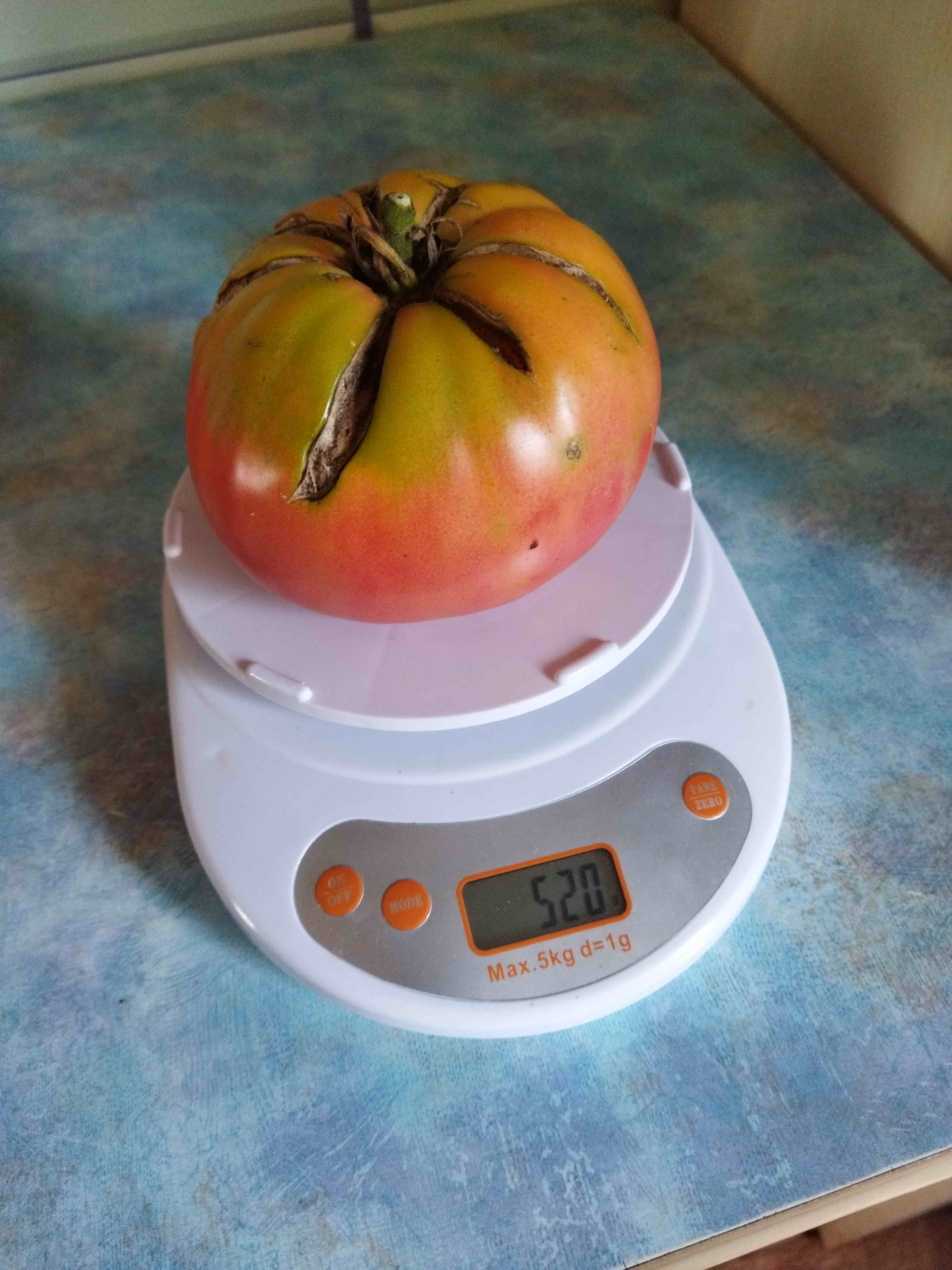 Помидор ранний, плоды крупные, но около ножки некоторые плоды дали трещинки. Подумаю, оставлять ли на следующий сезон.