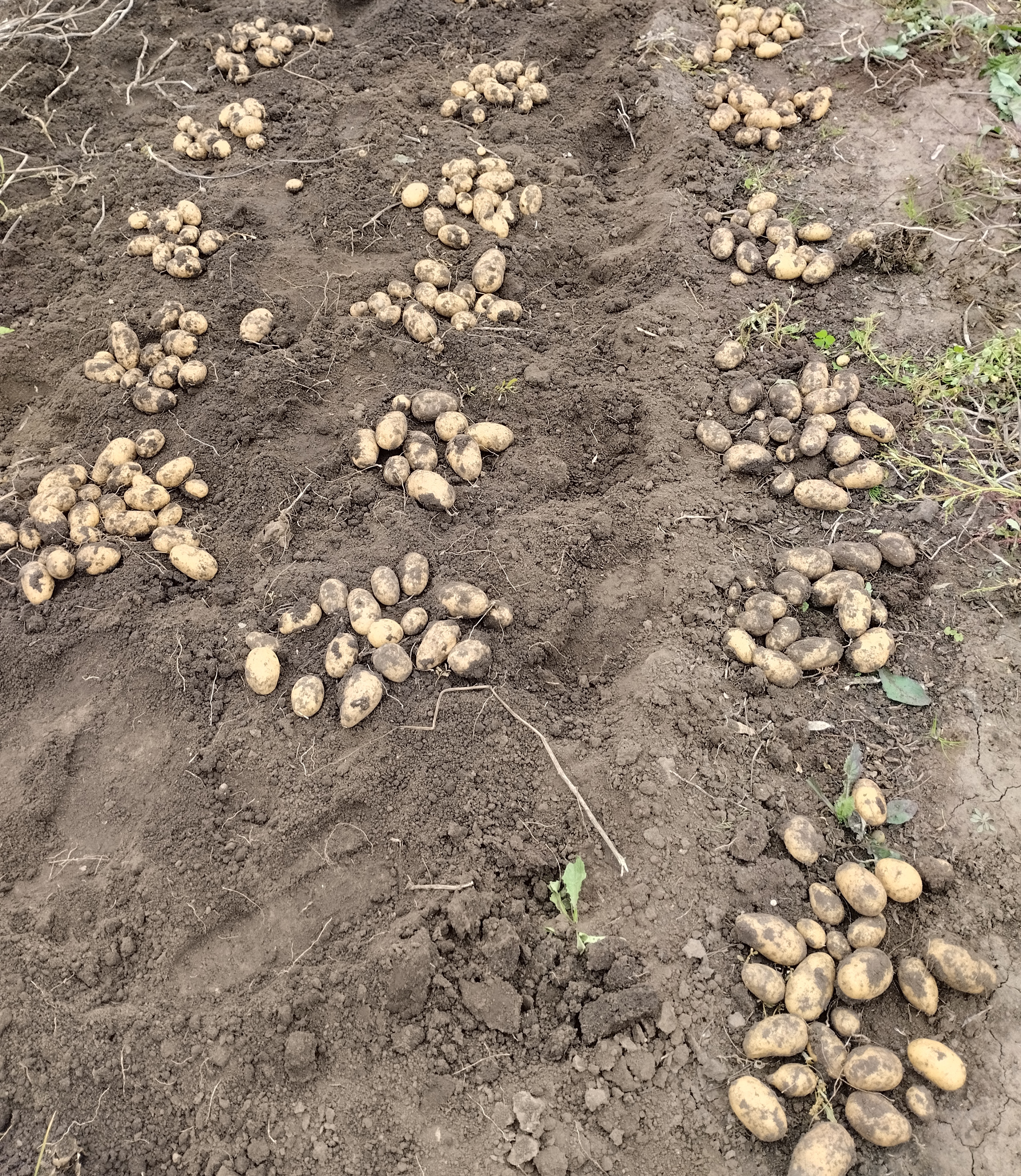 Некоторый итог по урожаю картофеля: выкопал 2 рядка Королевы Анны - мелковата, копать неинтересно: