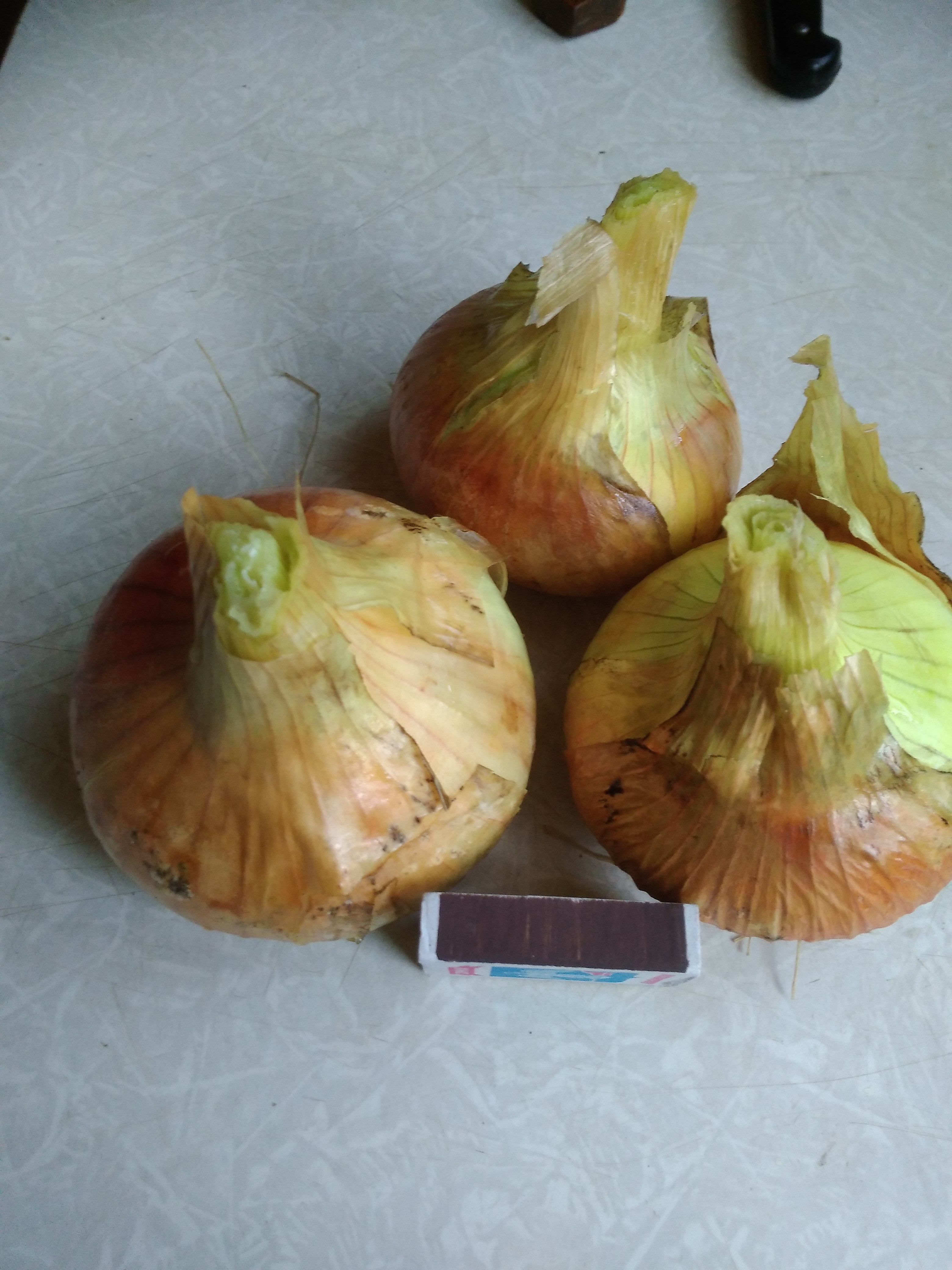 В этом году результат ожидаемый,посев на рассаду 1 апреля.Весь лук удался,как и ожидал-в среднем до 300 грамм и меньше.Хранится такой лук чуть лучше,чем крупный.Свои семена Эксибишен созревают в этом году чуть дольше обычного,погода сроки сдвинула.Садил подготовленными маточными луковицами в марте,с последующей перевалкой в открытый грунт.