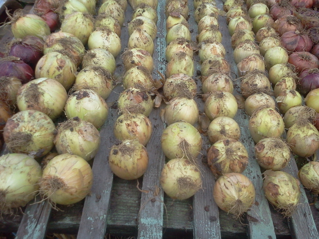 Сажал в этом году Эксибишн, Сеттон, Бамбаргер и два лука из Непецино - красный и белый.