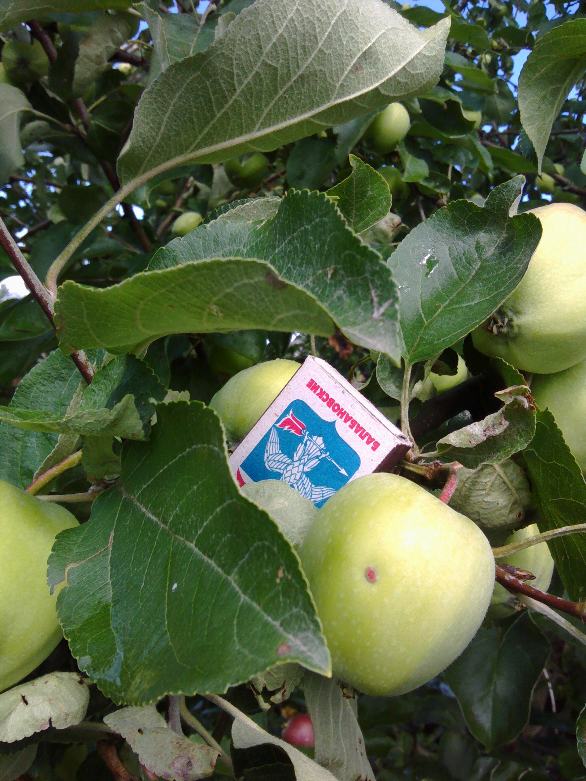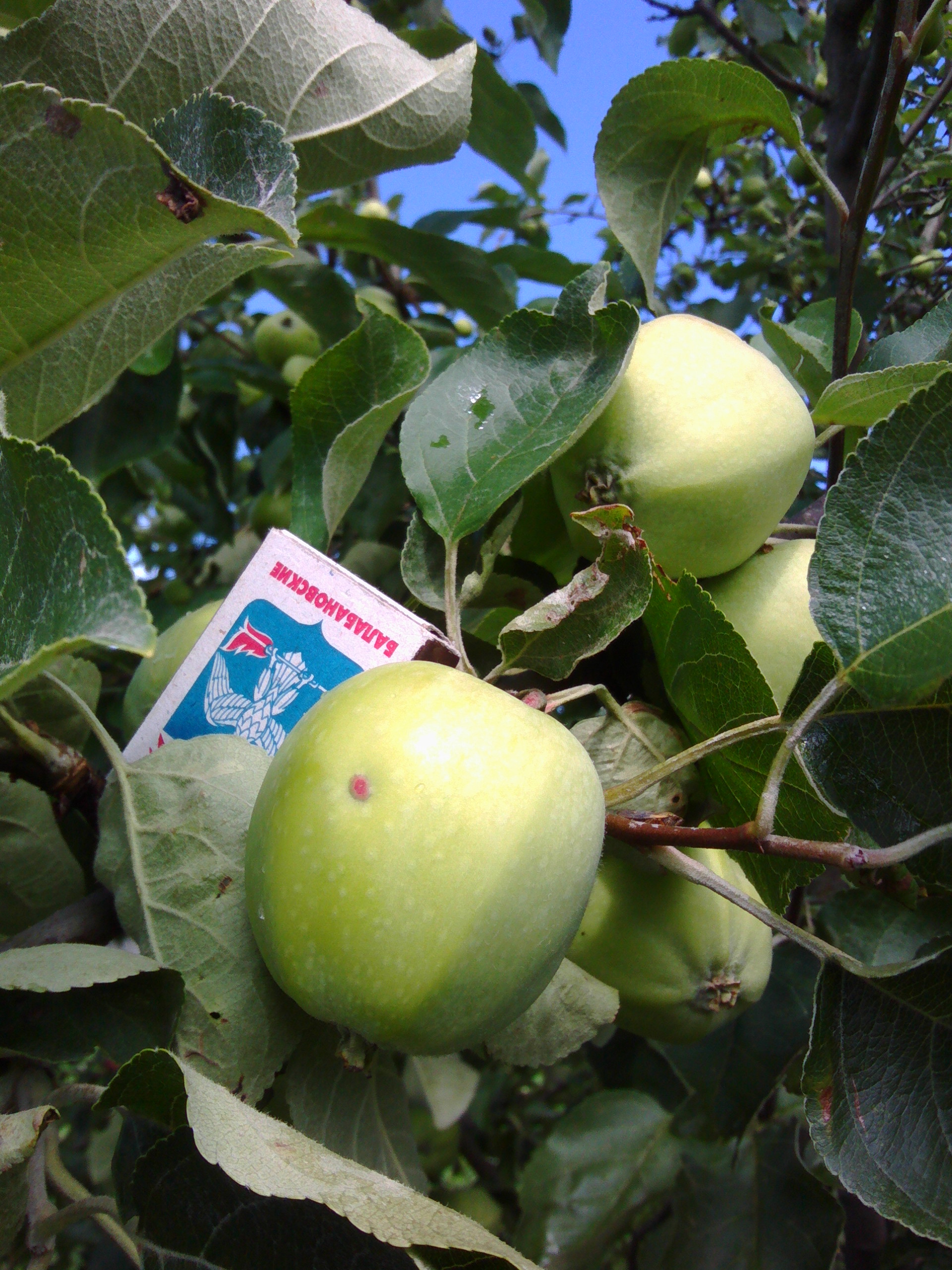 Ранний сорт у знакомого садовода (название не знает). Яблоки-падалица, среднего размера. Очень сочные приятного кисло-сладкого вкуса. По факту - самые ранние съедобные яблоки.