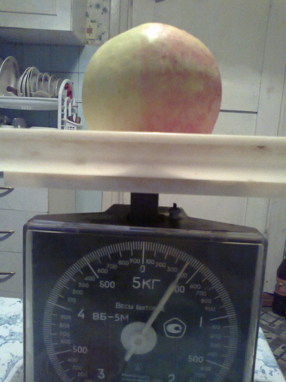 В чем реальная польза от таких крупных плодов? Не могу придумать ни одного разумного аргумента... Оптимальное яблоко мне представляется в диапазоне 150 - 200 г.