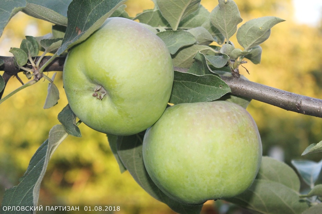 Самые крупные на сегодняшний день яблоки триплоидных сортов, но до осени уже созревают и осыпаются даже зимние. Осенью их догоняют настоящие зимние сорта. Орловский партизан уже размером с кулак.