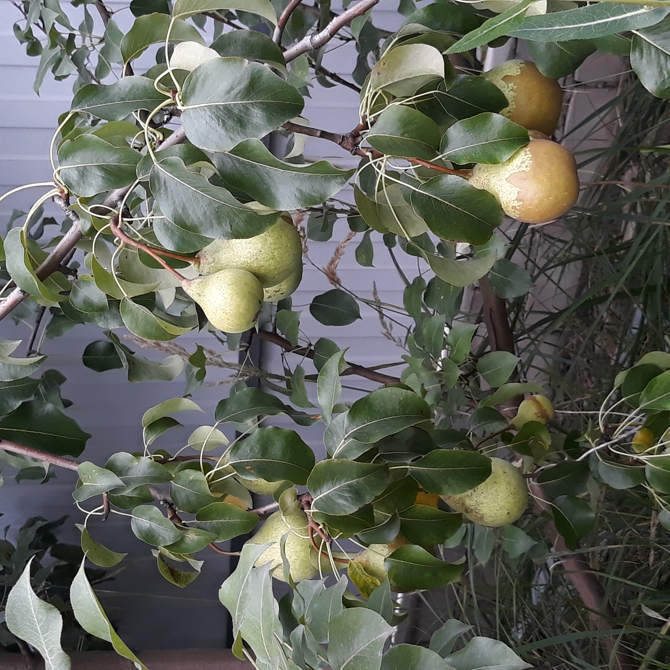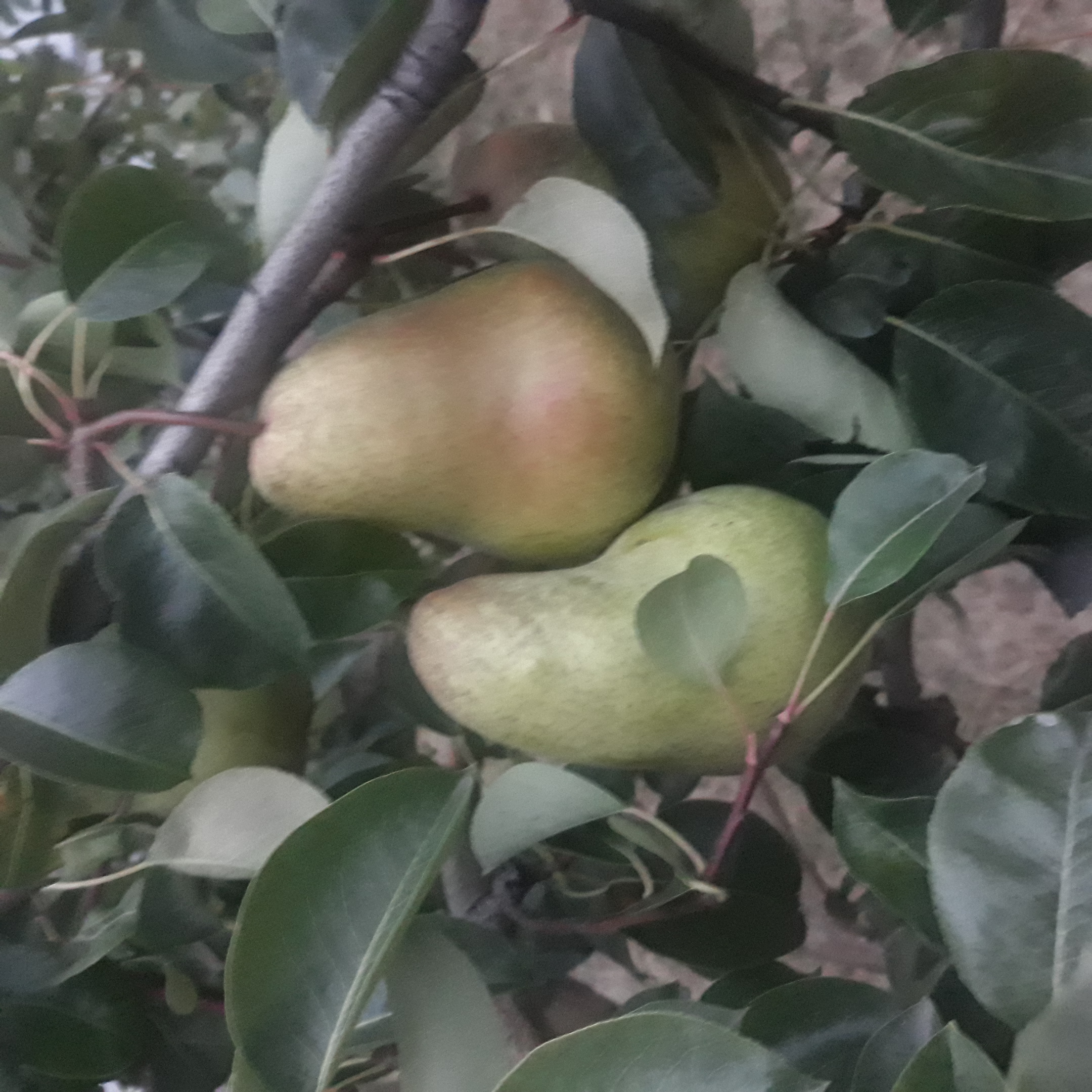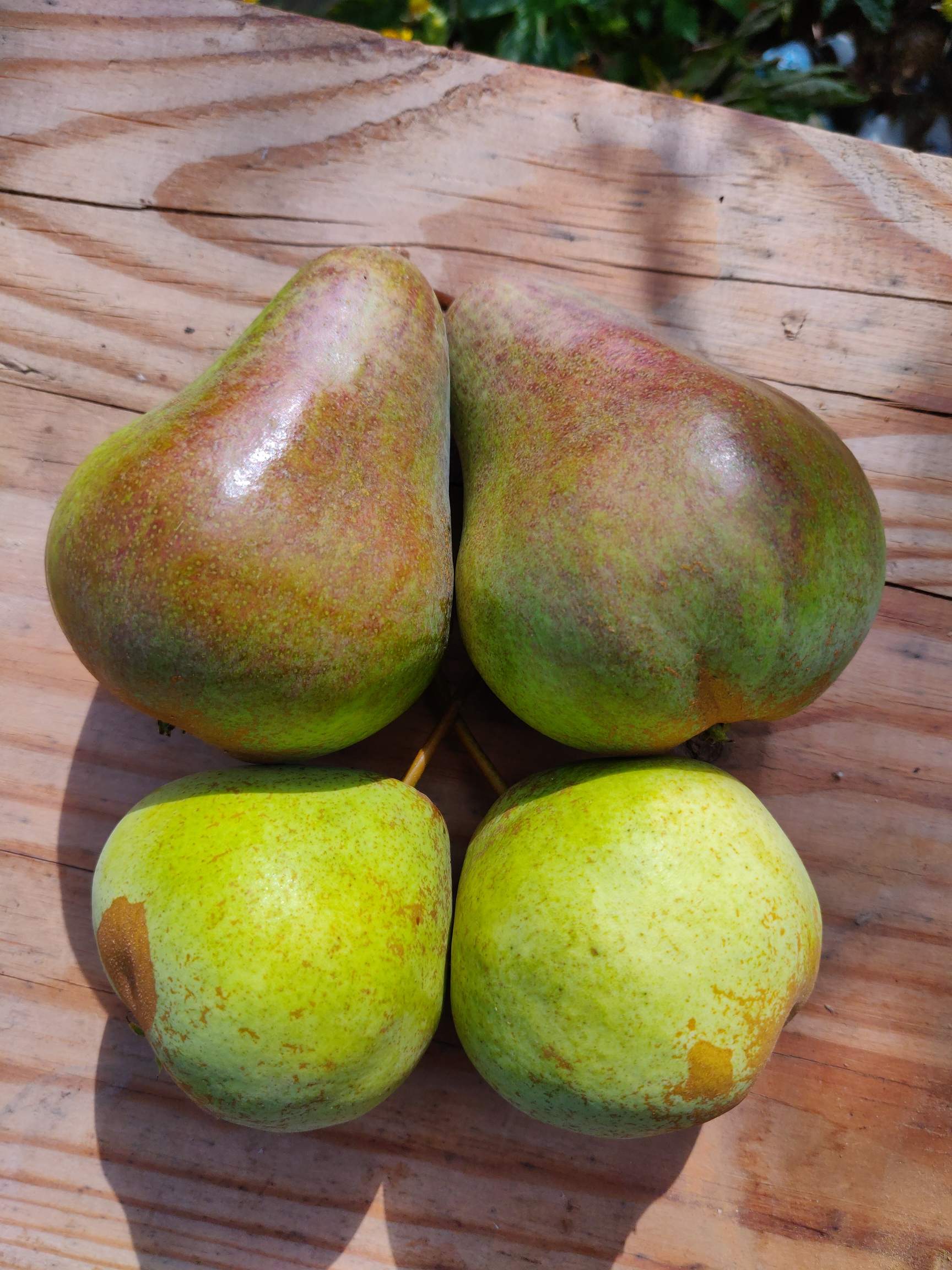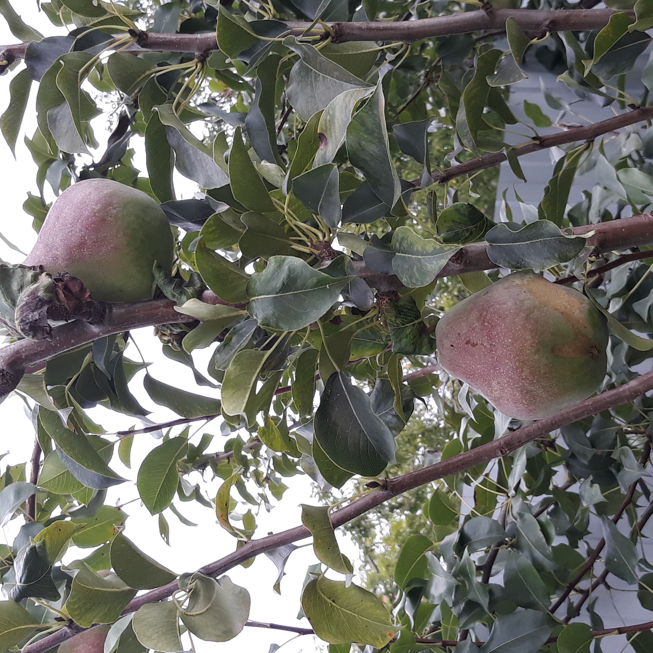 Моя Просто Мария наконец то завязала 22 груши на пятом году после посадки однолеткой, в прошлом году завязь сбросила. Груши огромные и ветки под тяжестью согнулись параллельно стволу, в один момент ствол даже накренился в одну сторону из-за рыхлой сухой земли и показались корни, так я подперла ее толстым суком и хорошо полила. Одну самую красивую сорвала, она висела очень неудобно. Попробуем через неделю. Плоды твердые, тоже думаю, что снимать ещё рано. Дерево сформировалось не совсем правильно, голенастое, в одном месте прививки не прижились, в другом слишком сильно оттянула шпагатом и при ветре ветка сломалась. Думаю, что с ростом оно выправится.