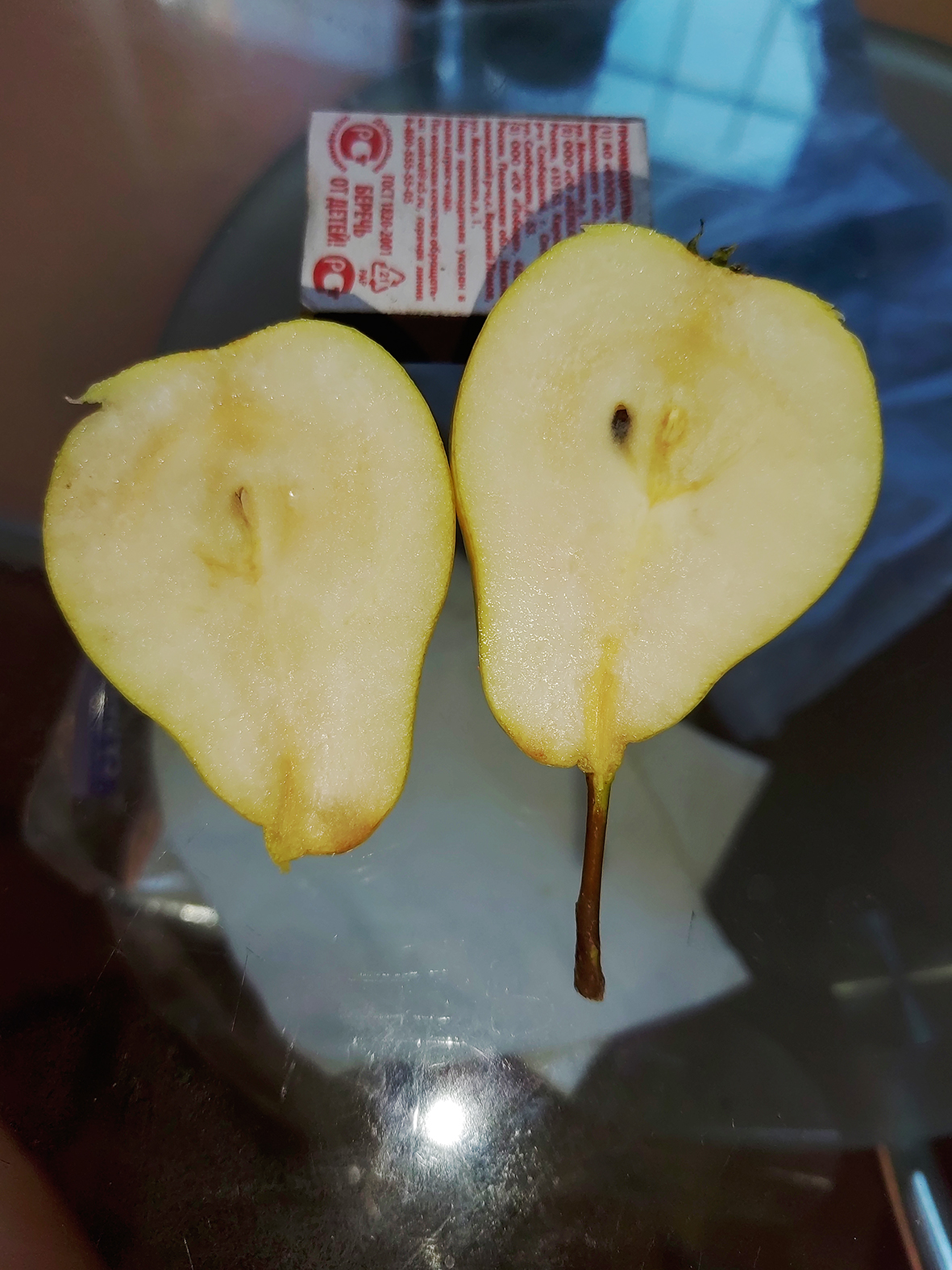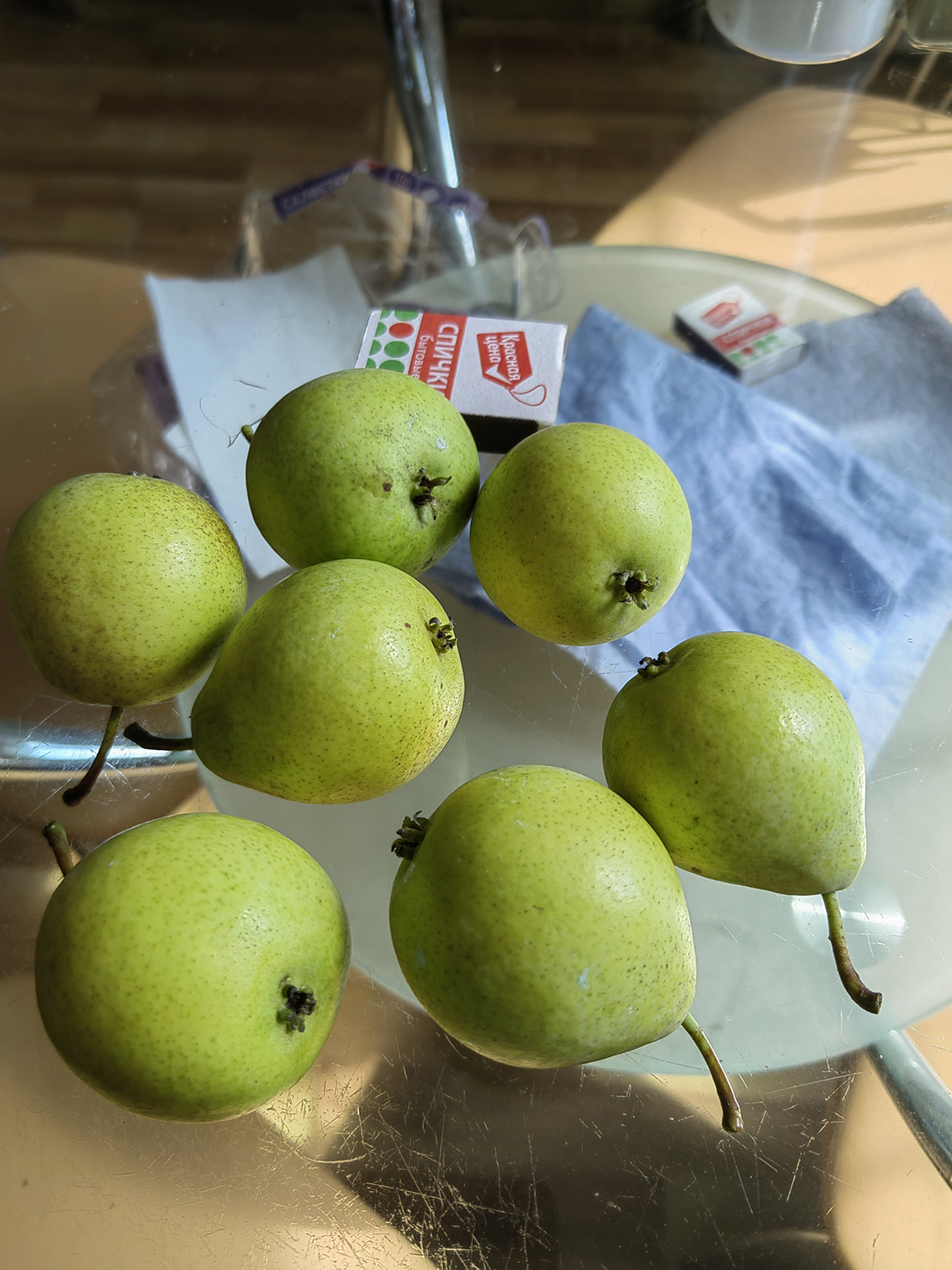 Кэп, вполне возможно, что пересорт, для этого и публикуем, для обсуждения.В инете есть видео и фото с похожими плодами на мои, и часто обзор происходит вместе с летними сортами.Выше есть мой пост о Медовой,уже их убрал в холодильник, первые груши пробовал, когда они приобрели полностью желтый окрас, когда собирал, попробовал, как бы не дозревшую, с зеленым окрасом.Мякоть плотнее,сока больше, вкус ярче.Вот после этого начал пробовать Кокинскую, вполне созрела, пока не убираю, посмотрим дальше.На этом фоне попробовал одну из сигналок Мраморной, плотная мякоть, сочная, сладкая.