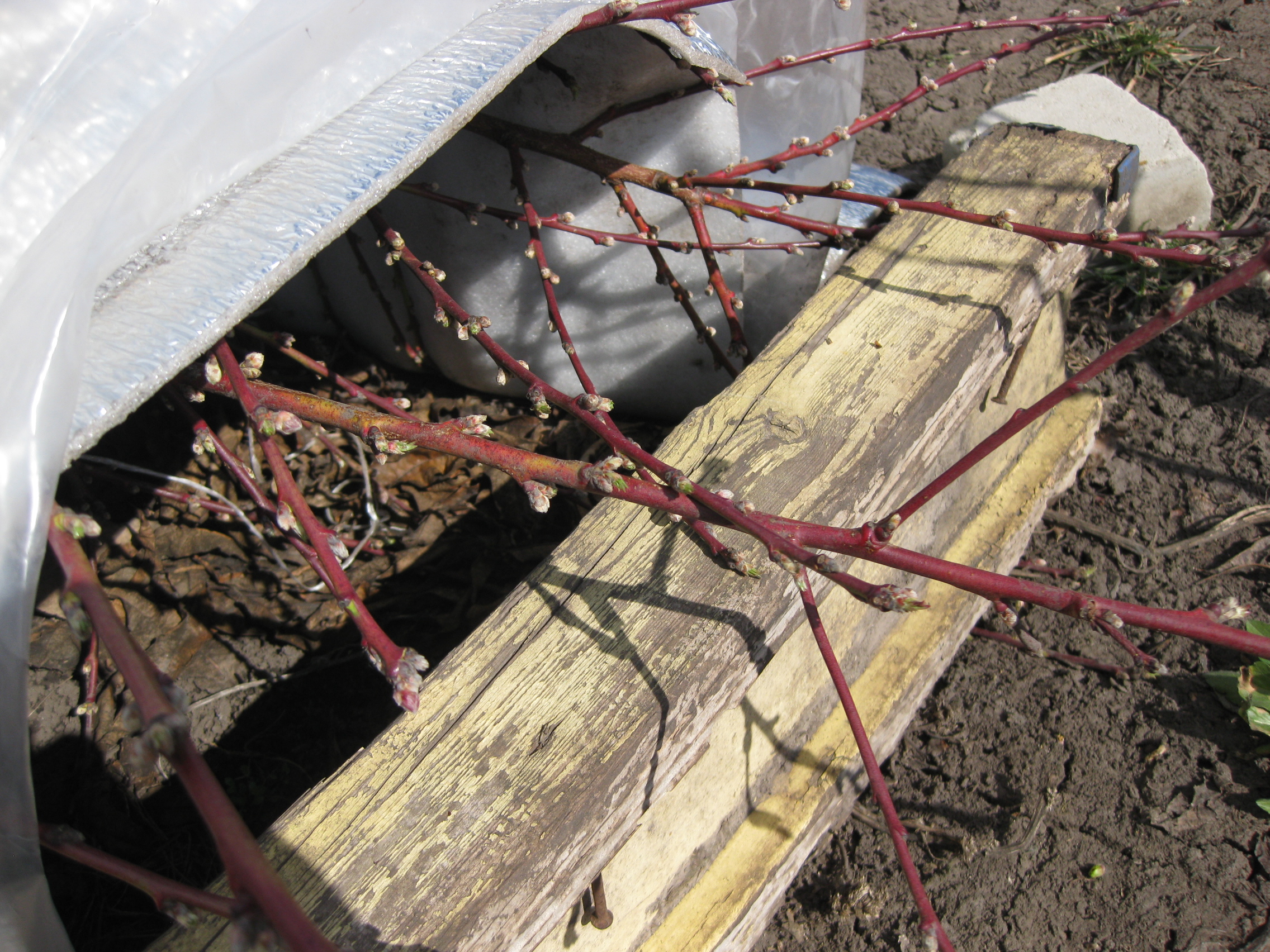 А я сегодня раскрыла один персик, который был замотан вспененным п\э, но он не пригнут, а замотан стОя. Почки у него совсем не проснулись. Остальные персики я решила пока не открывать, так они меньше будут греться, а то сейчас днем на солнце все сильно нагревается. Думаю, что под укрытием рост почек должен затормозиться. Ведь если такое укрытие положить на снег, то снег под ним почти не тает, когда все вокруг уже растаявшее, под укрытием всегда - снег и мерзлая земля.