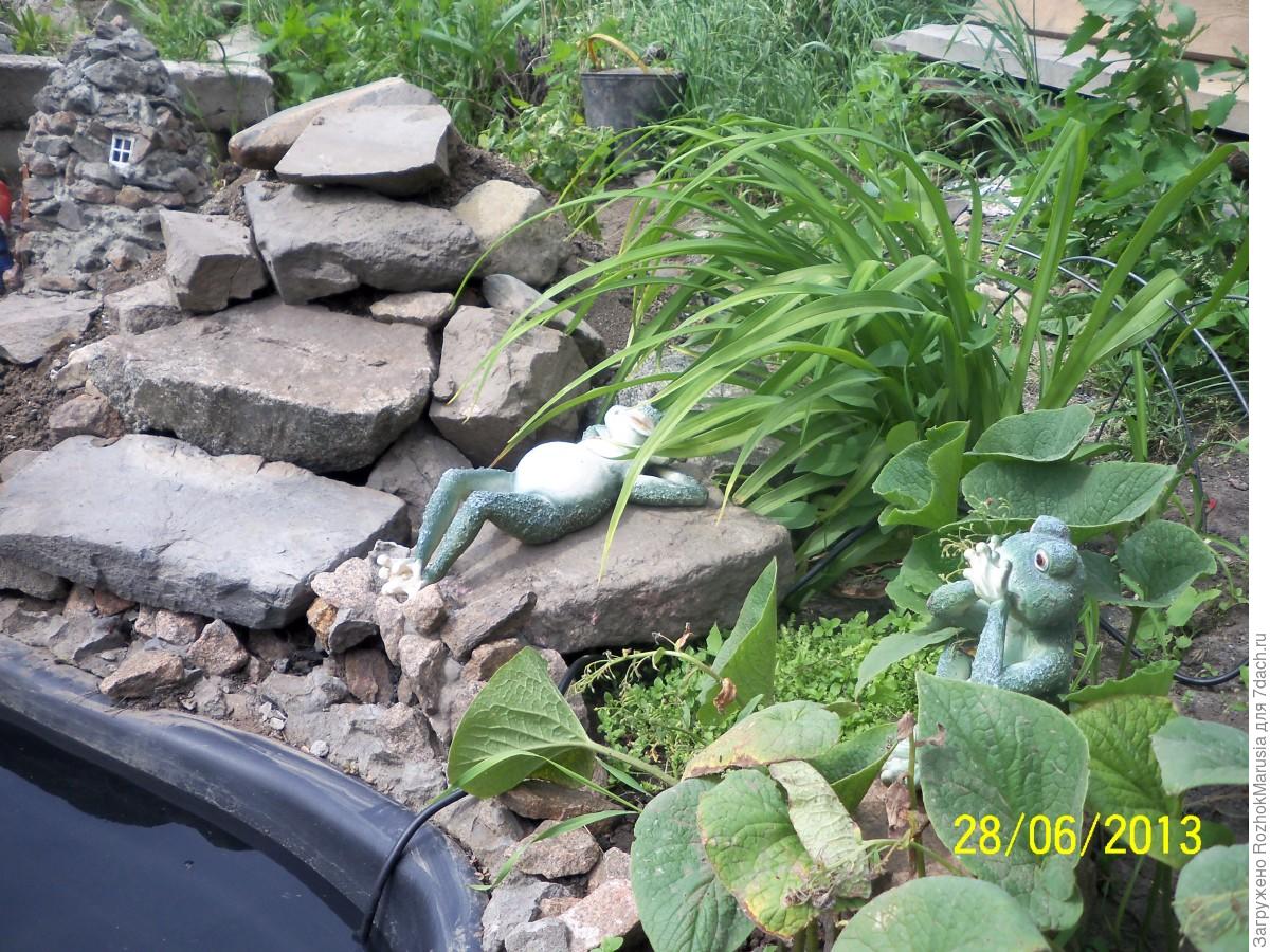 Ой, для детишек это - занятие на пол-лета. Можно и лягушек убрать. И домиков побольше. Но, чтобы ничего не осыпалось. И чтобы местечко было, песком засыпаное, где можно на коленках стоять.