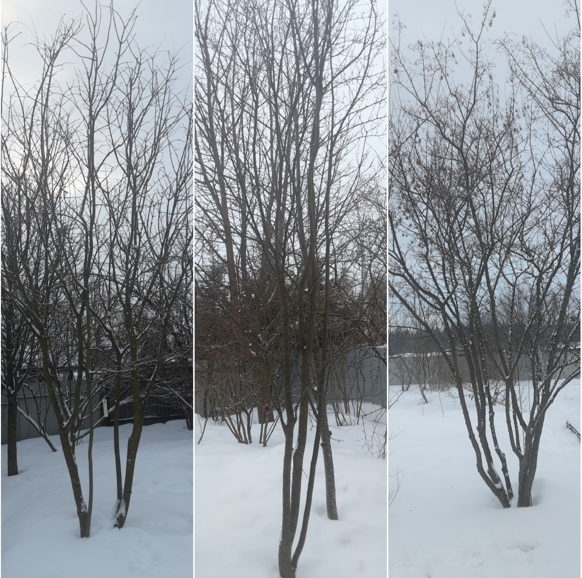 КрыжИр, Ира, а как ты отнесешься к предложению - все три посадить: в вершине угла - иргу сортовую, слева за скамейкой(вместо сортовой сирени, которая декоративна только во время цветения) - Амурскую сирень, справа за скамейкой - клен Гиннала. По зимним фото можно представление составить по габитусу.