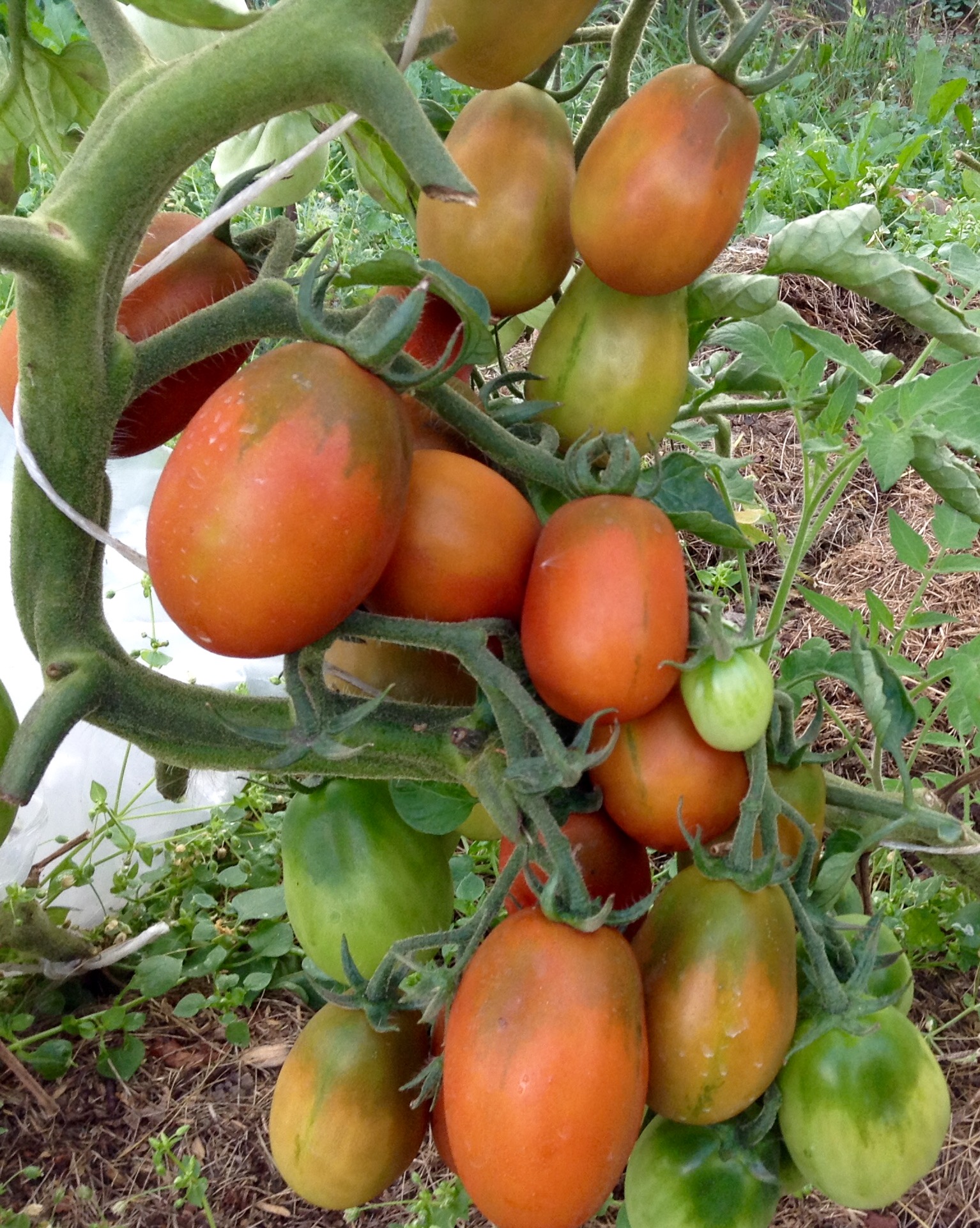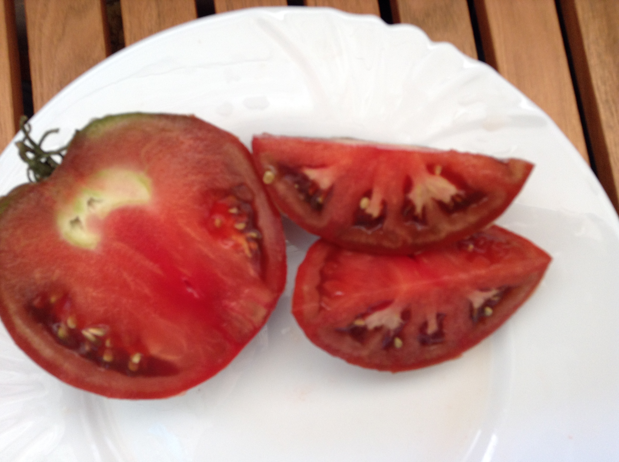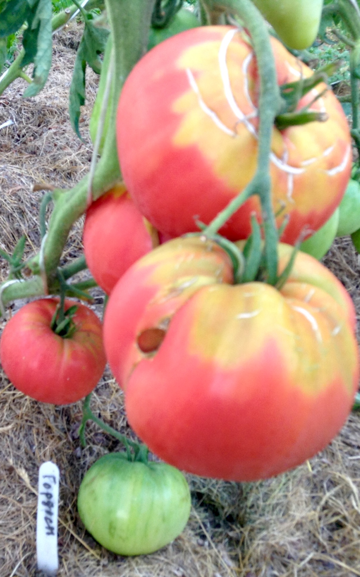 Лен, королеву покажу через пару дней, отложила на семена, буду собирать и выложу фотку. Но вообще, куст суперурожайный. Растет в ОГ, часть томатов умерла от ВГ, и осталост наверное штук 12, все крупные, а всего 2 кисти. Если понравится на вкус, буду сажать точно.