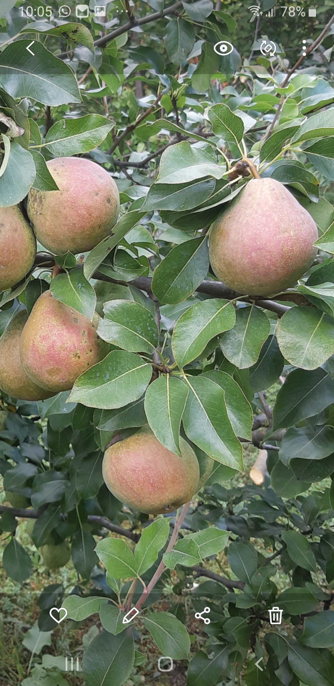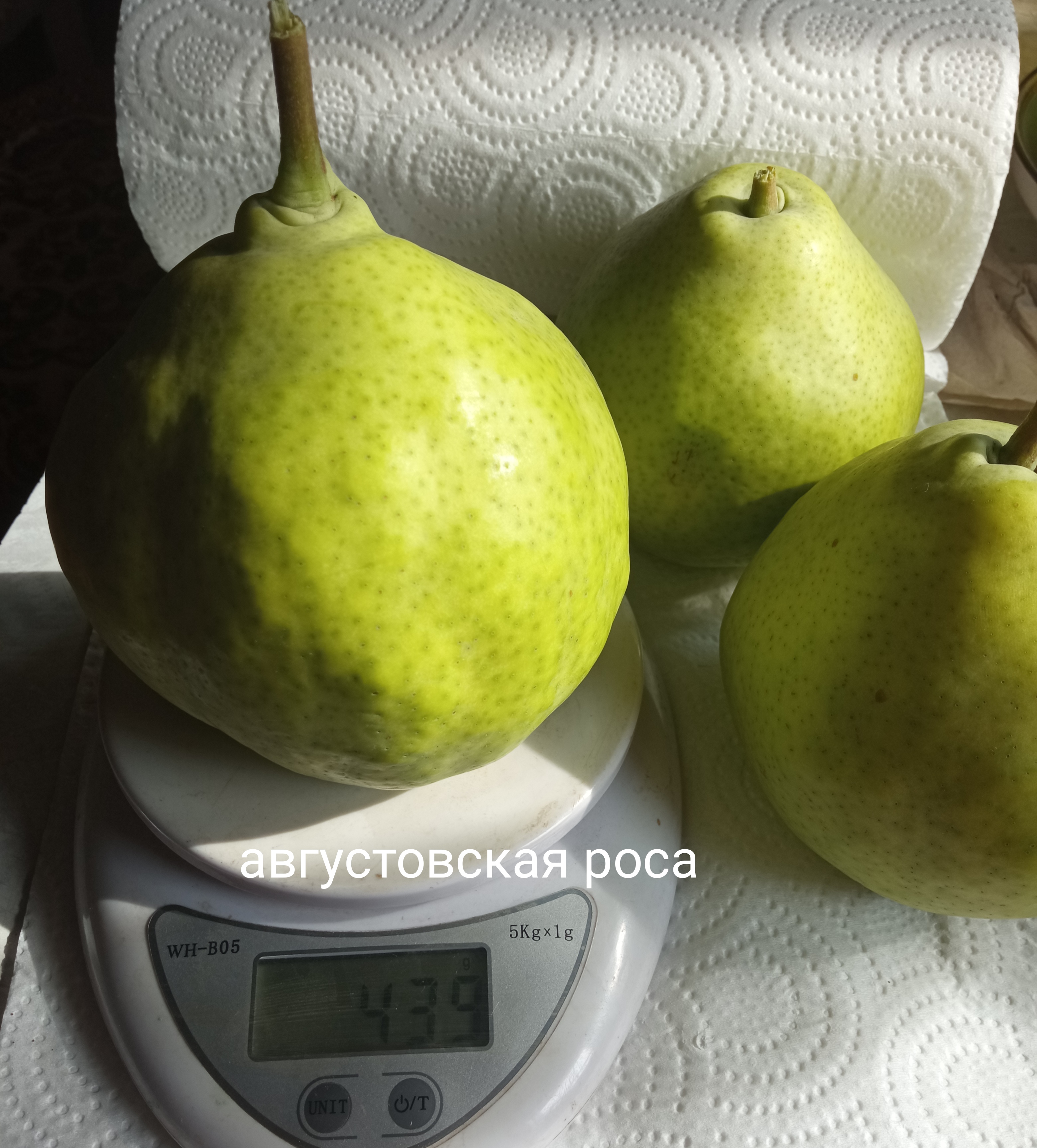 Классные груши! У меня Августовская роса на много мельче, правда их много, а веточки все хлипкие. Неделю назад пробовал семечки белые и вкус никакой. Память Яковлева была тогда полностью созревшая. Вчера пробовал Москвичку, от ветра упало пару груш, вкус пока тоже никакой. Пять лет назад пробовал первый раз Мелодию, прививка на Чижовскую, были сочные, вкус нежный, сахарок с кислинкой почти не осущался, 4,2 б . Плоды на нескольких прививках каждый год, но попробовать мне не удавалось, дети срывали зелеными. В этом году удалось употребить грушки три, зеленые, семечки белые, но самые вкусные для меня груши пока в этом году 4,7 б. Смело поставлю. Позавчера сорвал для внуков с двух прививок десять груш Свердловчанки, решил одну попробовать. Вкус более резкий, чем у Мелодии, больше кислинки на 4,5 б. Повкусней в этом году были груши Памяти Анзину, но это единственный сорт который не жалко мне было бы удалить из сада.