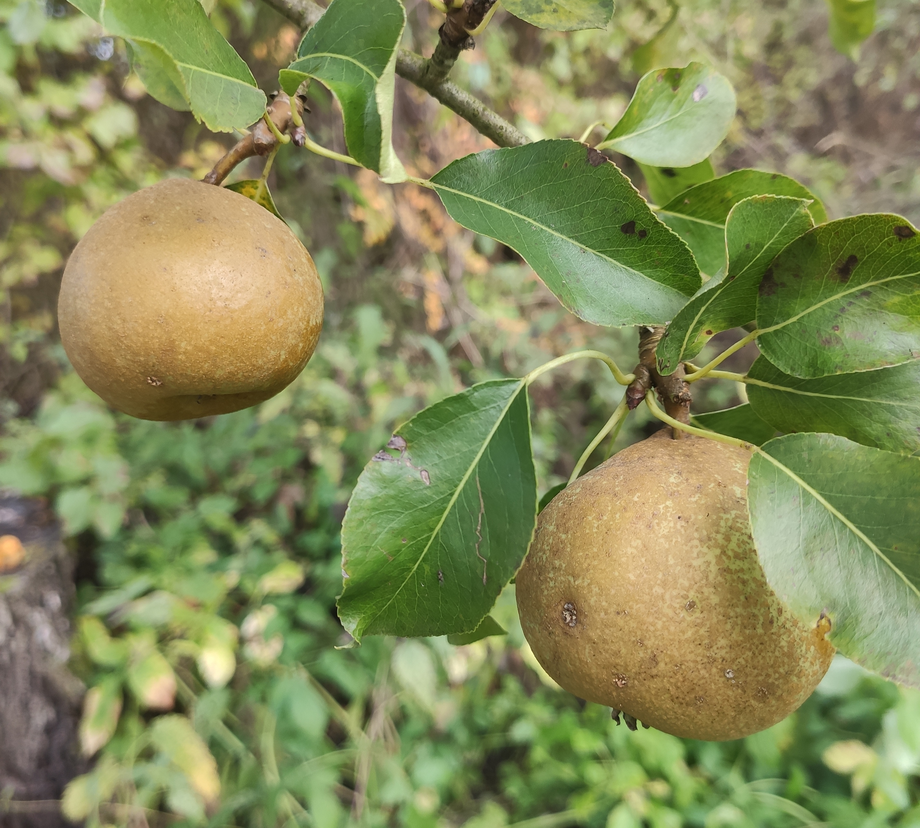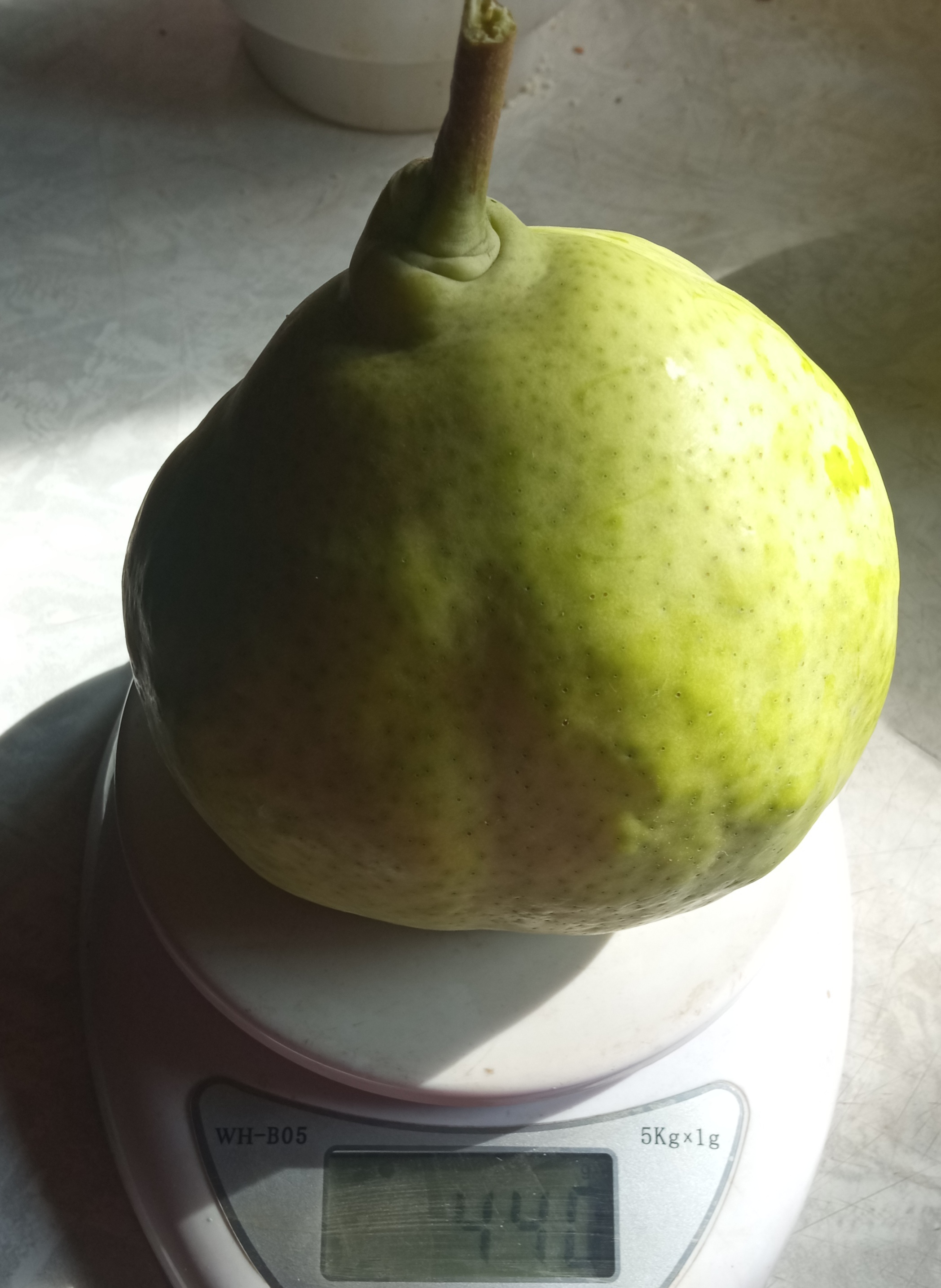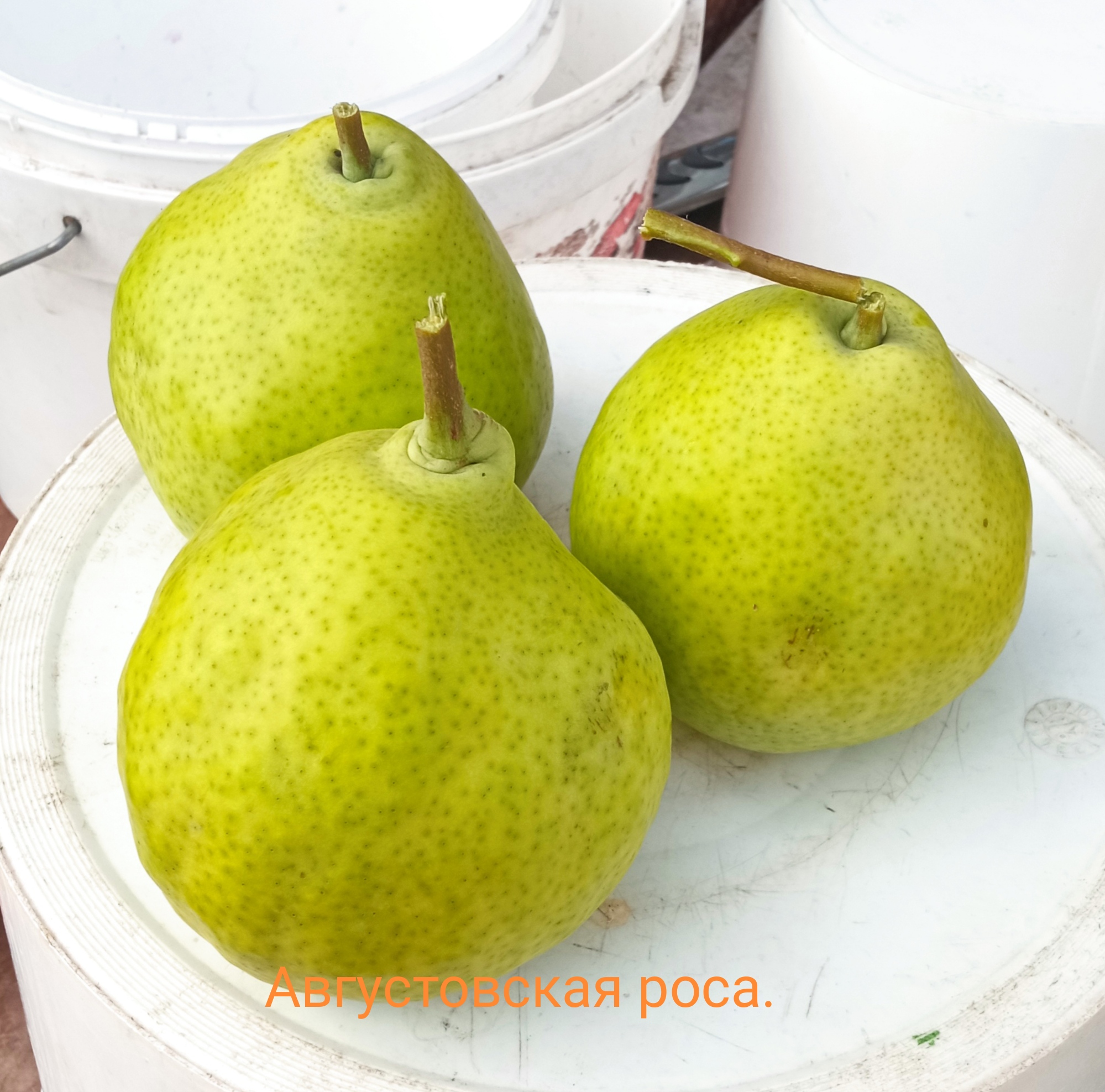 Вот моя Августовская роса. До сих пор лежит в холодильнике и на подоконнике. Сфоткал прямо сейчас. Груша вкусная, но созрела поздно, и ей в этом году приходится конкурировать с очень серьезными соперниками из более высокой лиги. P.S. Теоретически мог перепутать ее с Млиевской ранней. Две прививки на одном дереве, и с обоих птицы сорвали бирки с надписями. Но именно эту я идентифицировал месяца полтора назад как Августовскую росу.