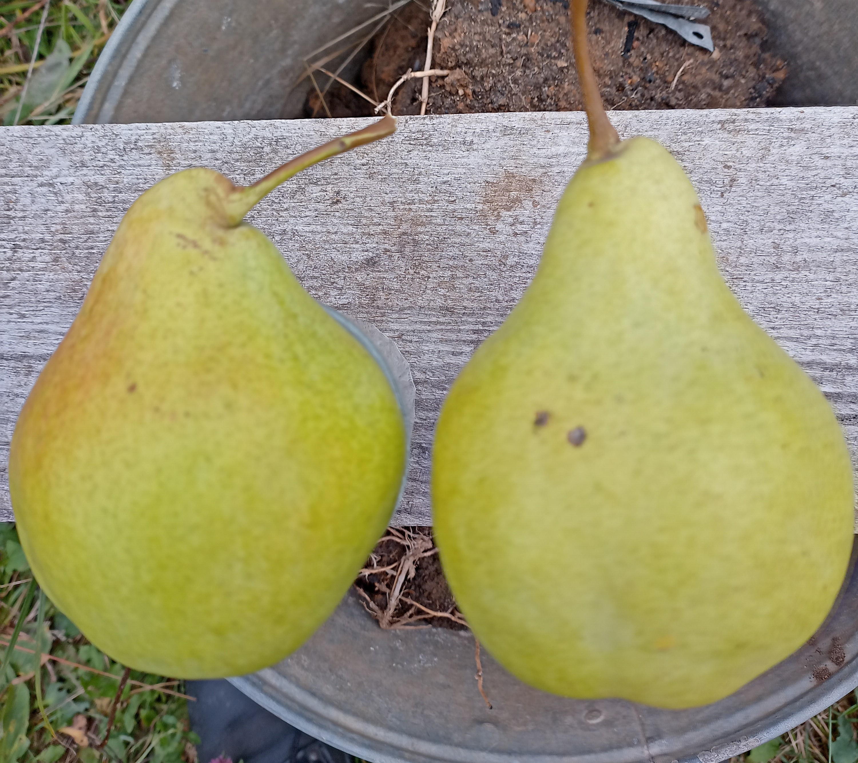 Снял сегодня первый урожай с прививки Белорусской поздней (?) - 4 маленькие груши примерно по 90 граммов. По внешнему виду совсем не похожа на эталонное фото Василия. Оржавленности практически нет. Перепутать я не мог: это тот черенок, который я покупал как БП. Наверное пересорт.