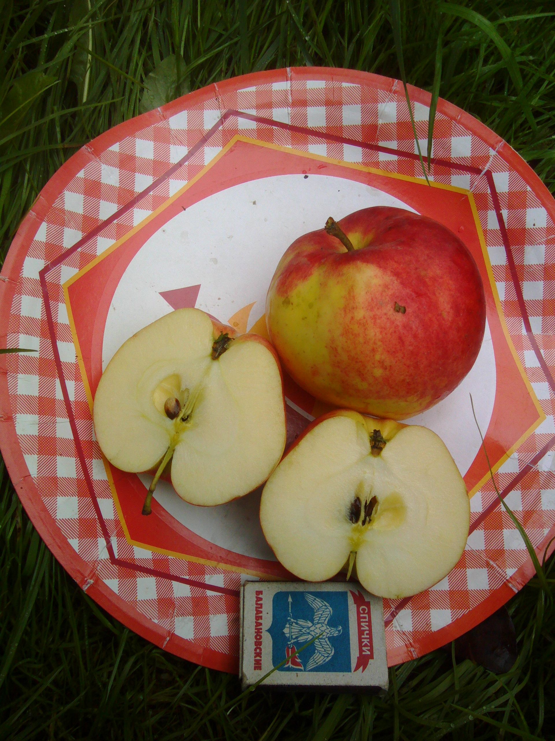 Аэлита. Автор С.И.Исаев. Красивые чистые плоды. Мякоть белая. Вкус кисло сладкий гармоничный, можно сказать десертный. От родителей Коричное и Уэлси унаследовал плохую крону. У кого места много,можно смело сажать деревом