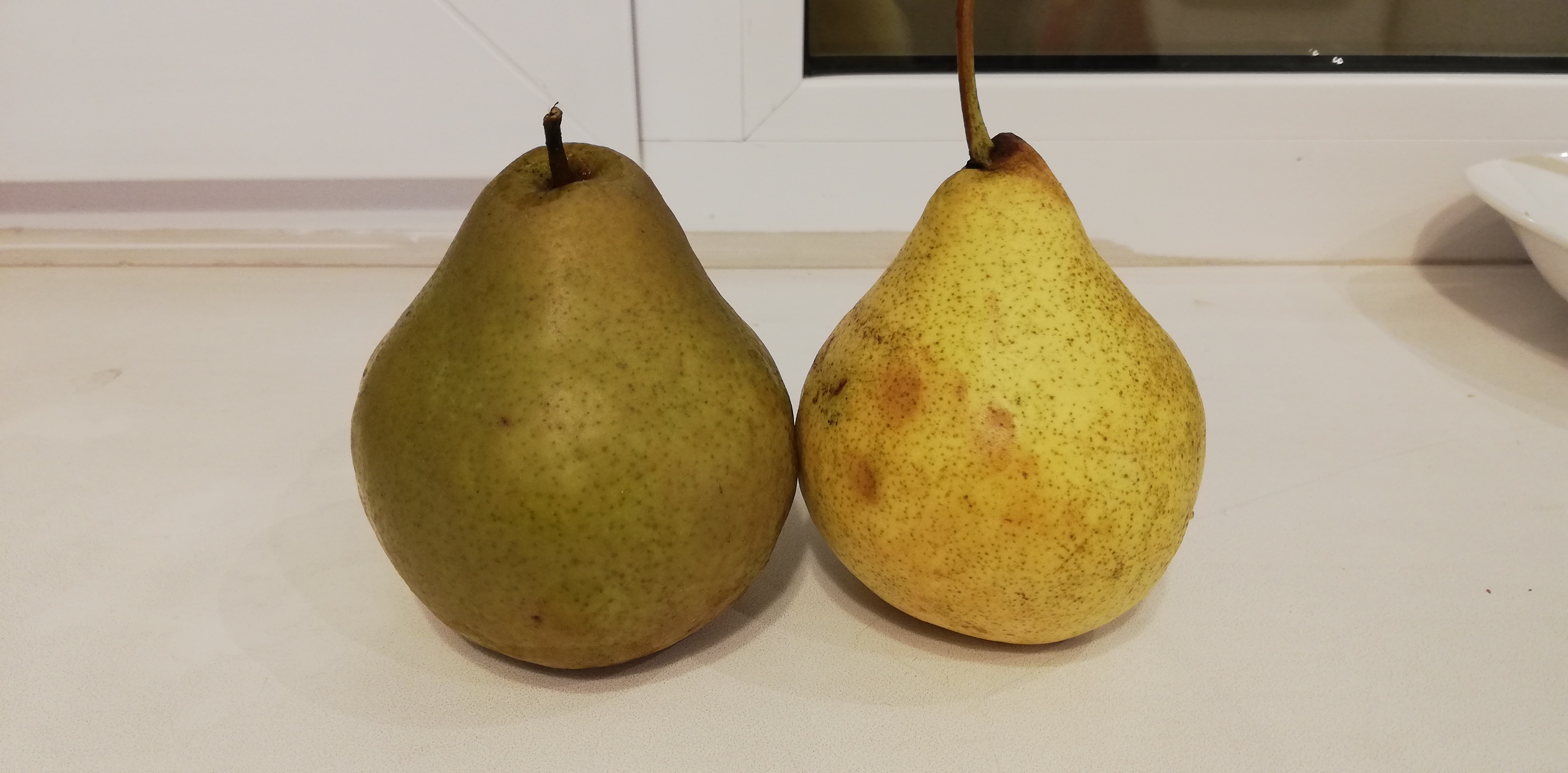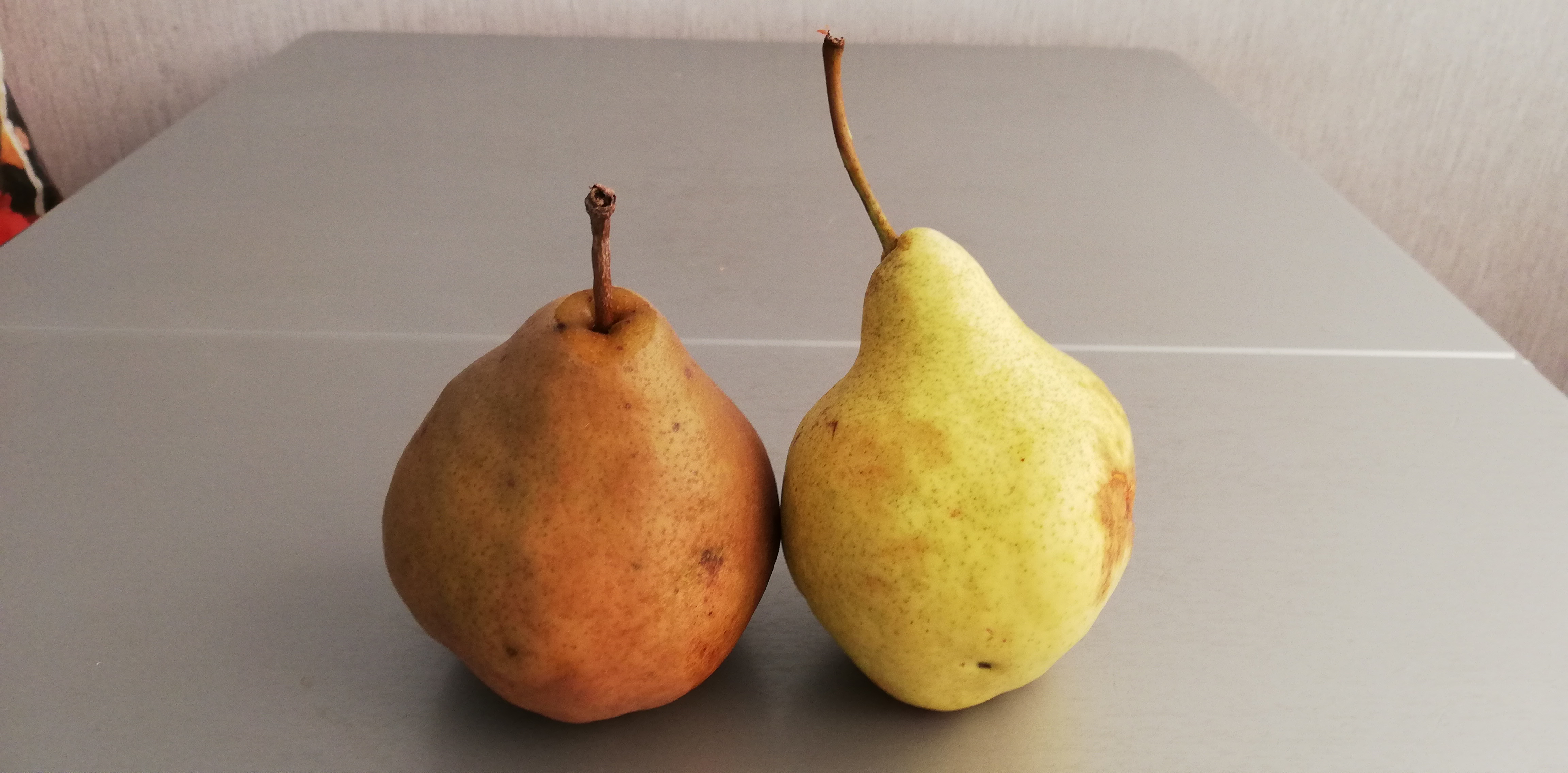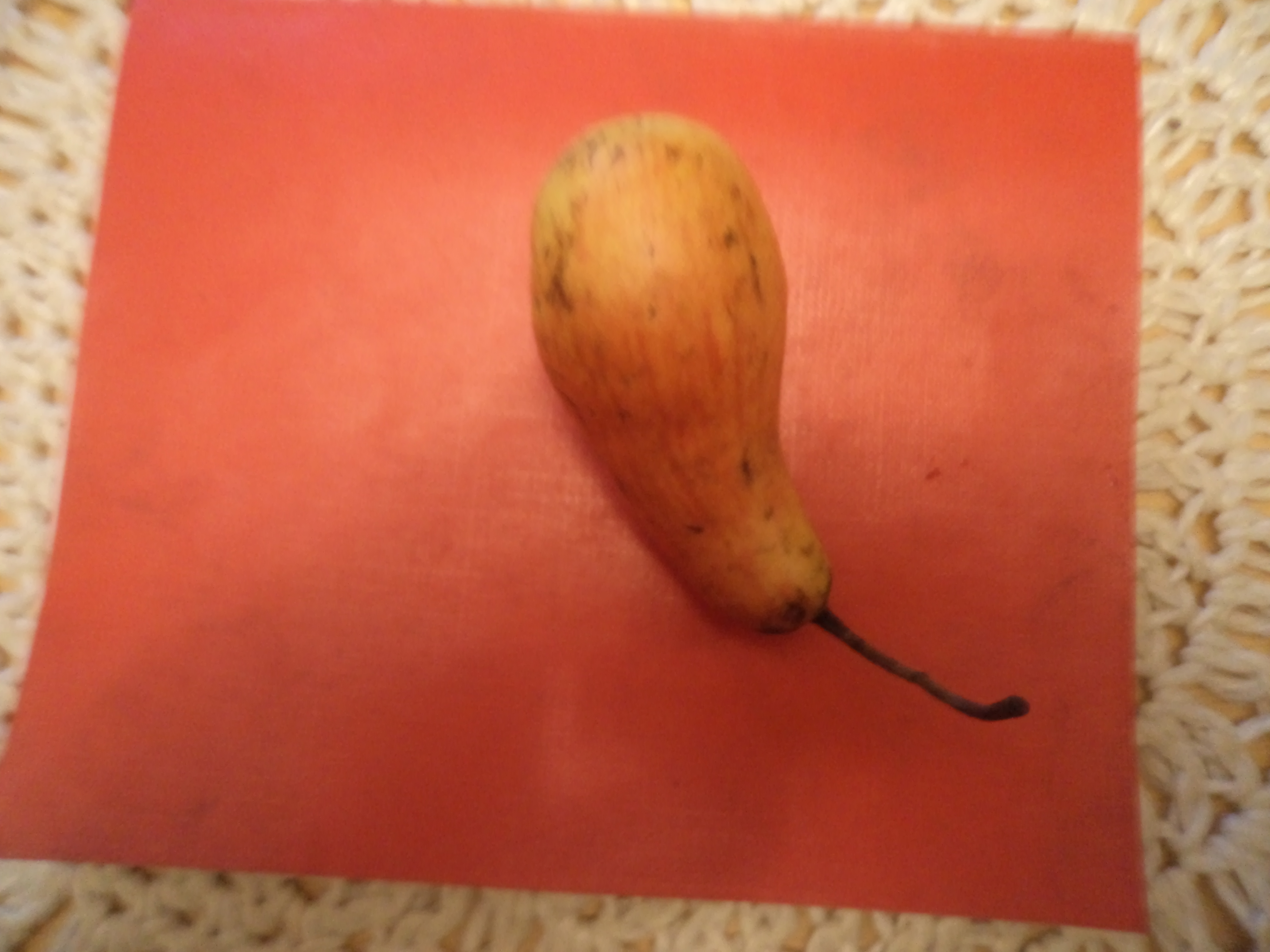 Достал из холодильника один плод груши Талгарская красавица, разрезал его ножом пополам и начал дегустировать. Мякоть оказалась довольно плотная,скалывающаяся,сочная. а сам вкус довольно простой с ощущением "травянистости"-явный недобор сахара. В прошлом году в это же время вкус плодов данного сорта был намного лучше. Словом-большое разочарование вкусом!