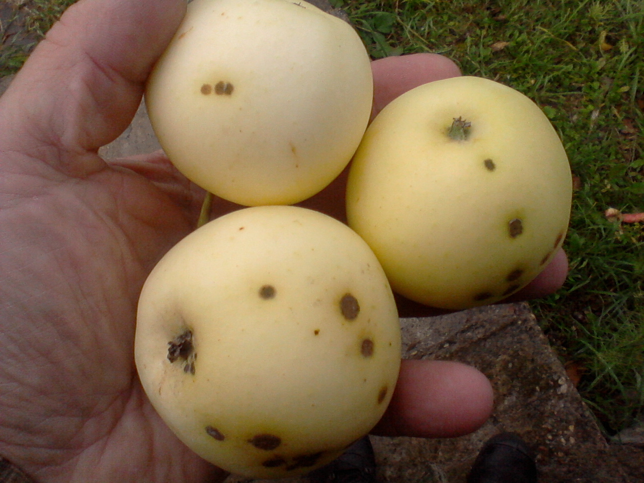 Флорина - 5 яблок (всё, что оставил) висят до сих пор. Почему-то всё лето плоды, выросшие до какого-то размера, как бы уснули. И только со второй половины сентября стали укрупняться. Скучает, наверное, моя Флорина по Франции.
