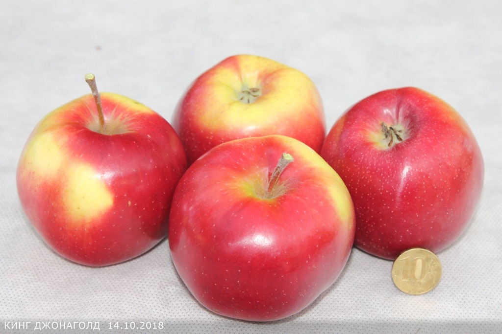 В прошлом году привил Кинг Джонаголд. В этом году из одной плодухи завязались и созрели 5 плодов, один плод я продегустировал до фотосессии :yes:. Вкус мне тоже очень понравился, мякоть пока плотная и грубая, но сахара набрали плоды уже прилично, я люблю потреблять яблоки пока в них плотная мякоть.