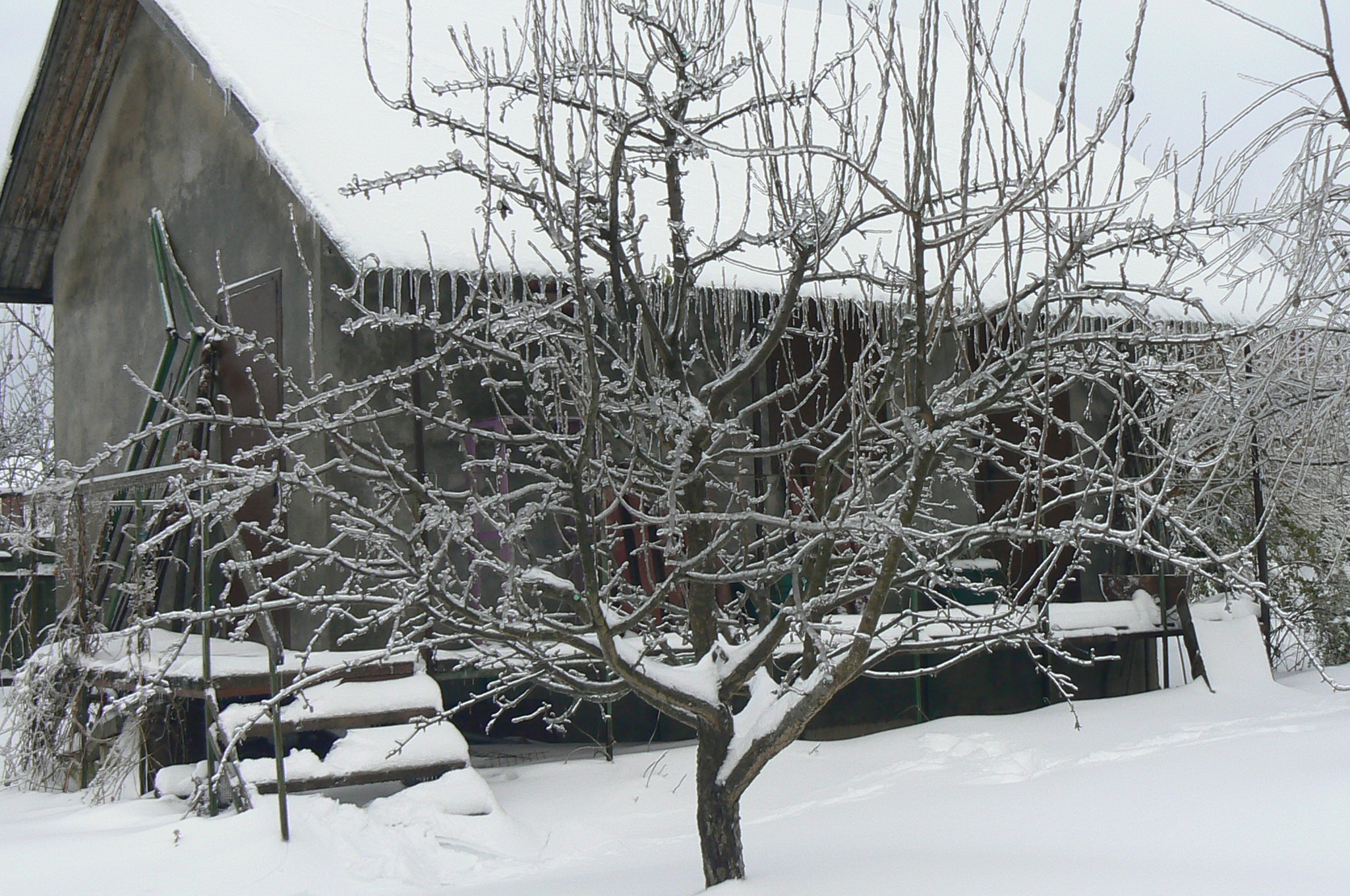 13 ноября 2016. а это Волочаевка тогда же. А это она развалилась - не выдержала нагрузки льдом. Это уже второй случай у нас в саду, когда "чаши" разваливаются. Поэтому даже что-то подобное "чаше" , боюсь формировать. Это я насчёт формирования верха Чижовской. "Климат" такой - только разреженно-ярусная форма.