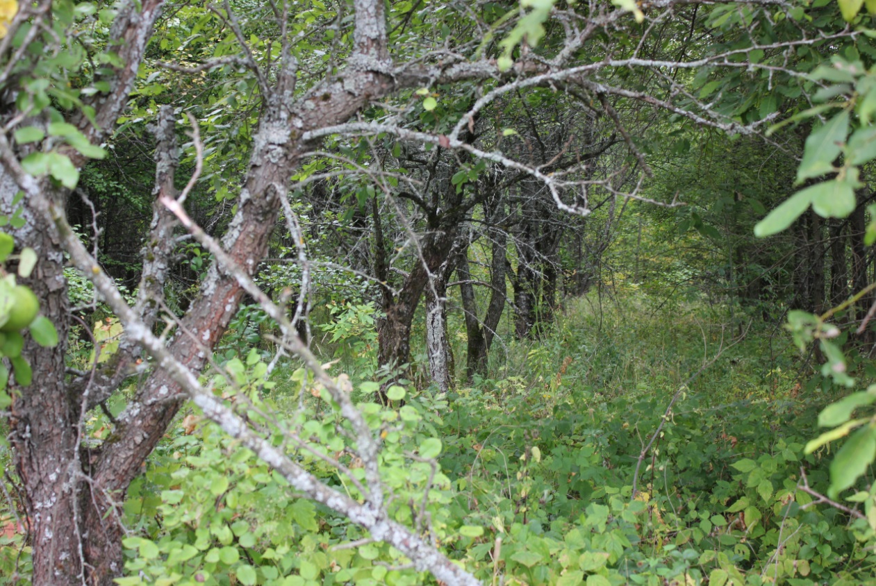 Нижние ветки у груши могут состариться в одном случае-недостаток света. Это важно понять. Груша очень светолюбивое растение. Причем это растение верхнего яруса, поэтому в диких условиях пытается доминировать любой ценой, в т.ч. отмиранием нижних веток но зато ростом верхушки. Ниже привожу фото из грушевого сада (Кокино) где наглядно это видно. Очень часто дачники путают такие ветки со старением, подмерзанием, а это лишь недостаток света. Причем свет влияет и на восстановление после подмерзания и даже на вызревание плодов.Zaryanka писал(а):нижние ветки, ведь, ещё не состарились, у них приросты большие, но я обрезаю их на 2-летнюю древесину, чтобы не были голенастыми. А вширь - нельзя: с одной стороны - грядка с зеленью, с другой - дорожка.