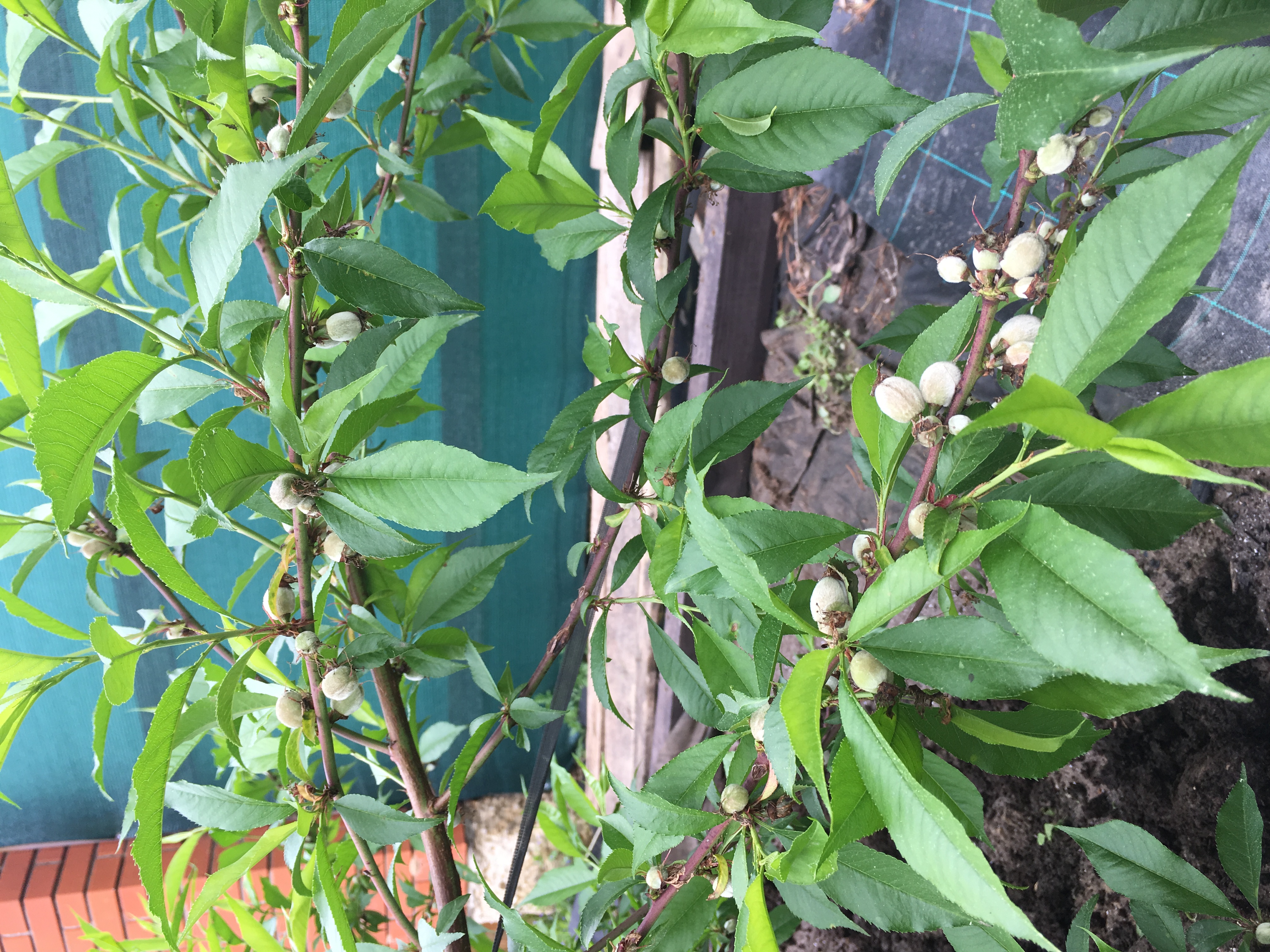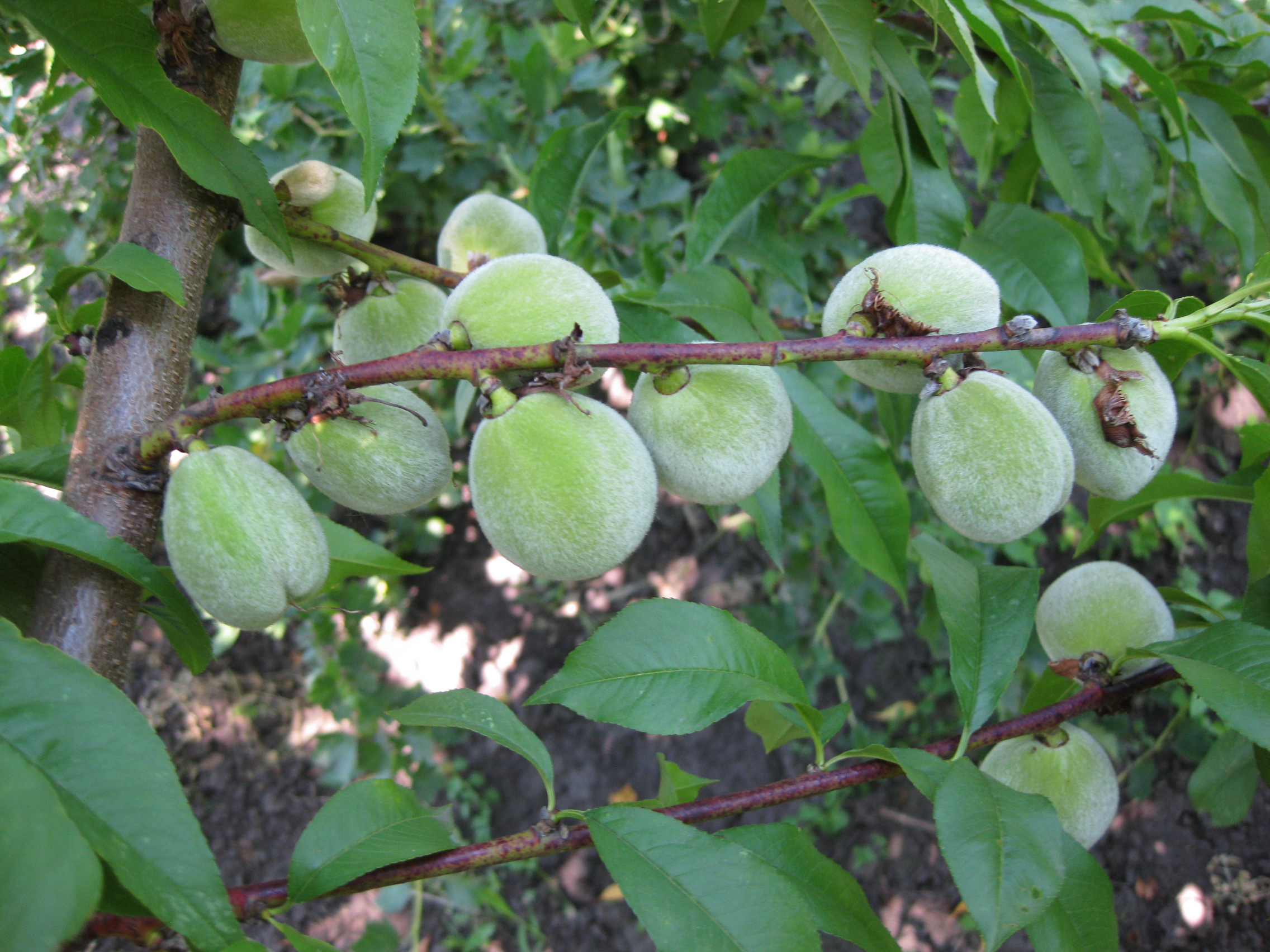 Персик Т3. Типичный вес готового плода 200-300 гр. При такой плотности они просто не разместятся на ветке. Либо часть отвалится, либо будут мельче. Сейчас размер с грецкий орех. Фото сегодня. 20.06.