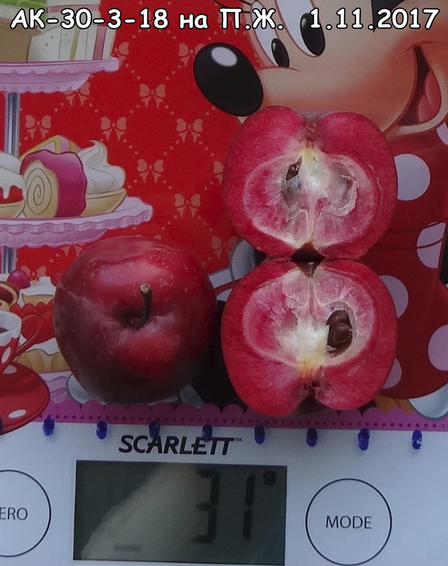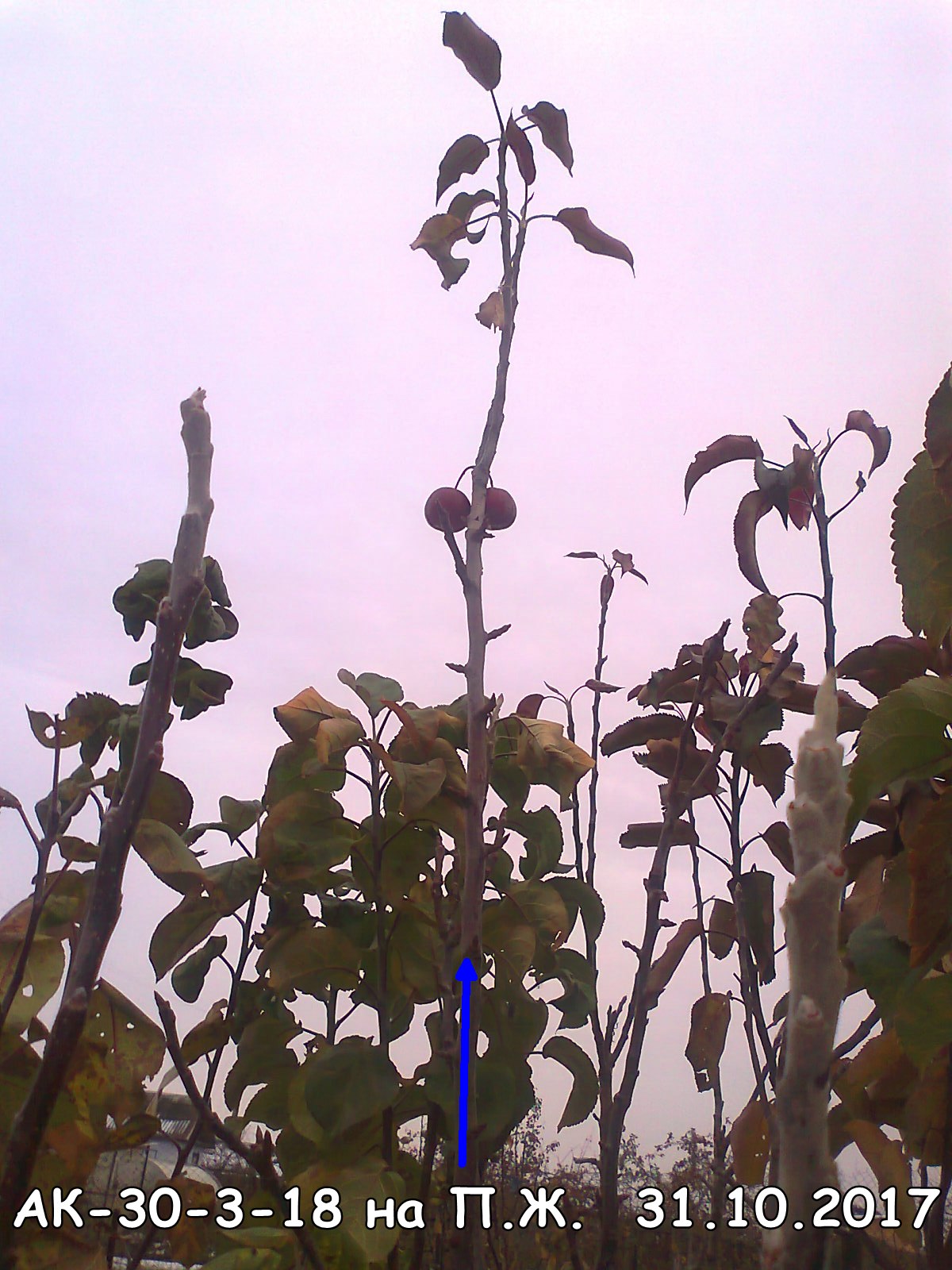 АК-30-3-18, прививка 2016 года в крону Памяти Жаворонкова, второе плодоношение.