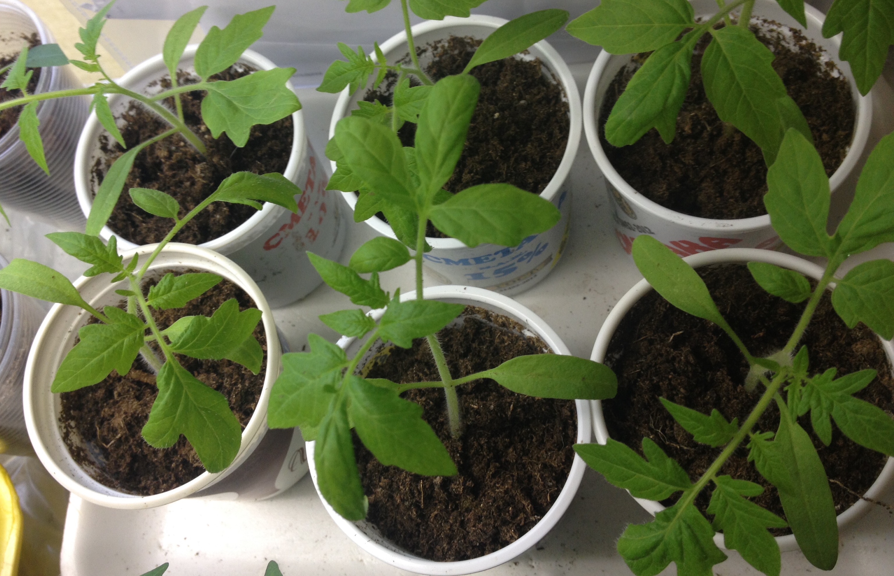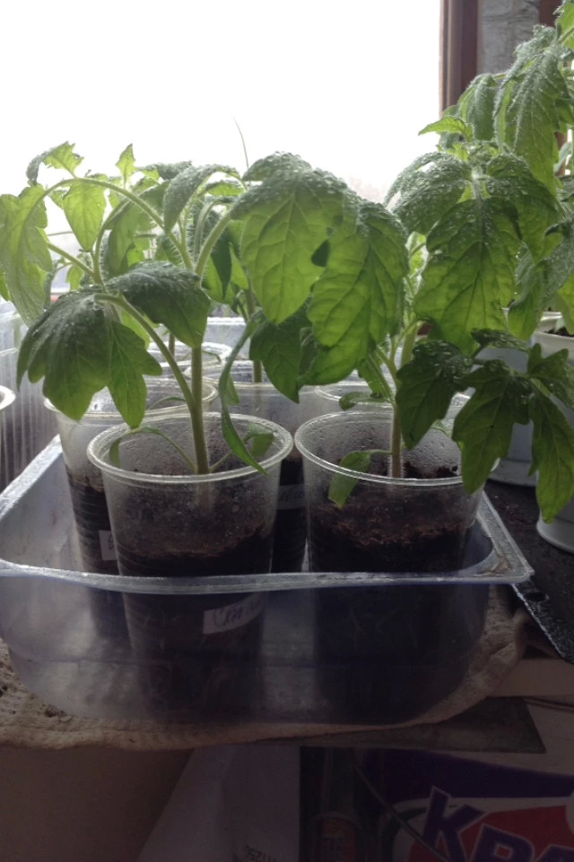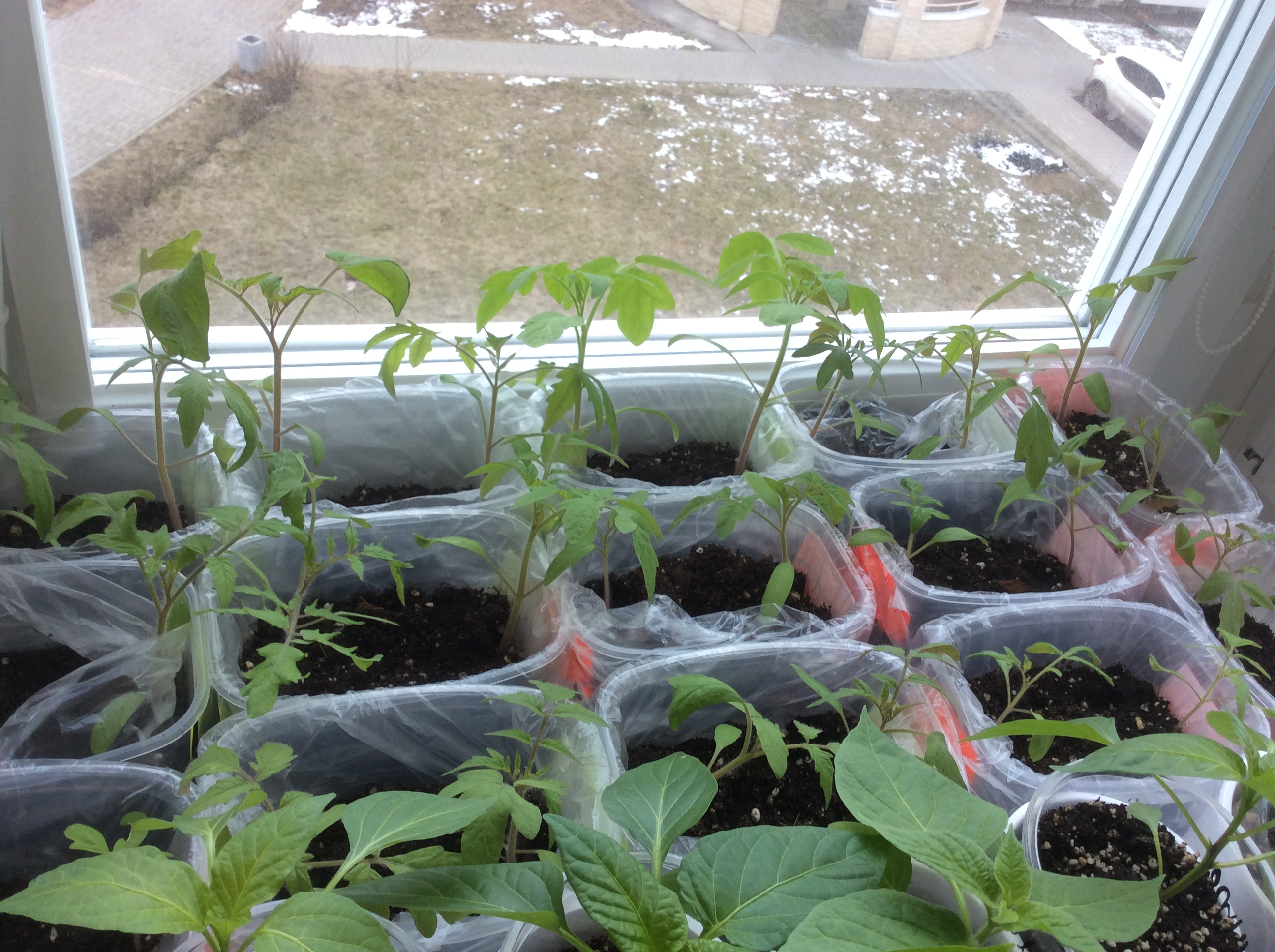 и еще не рассаживала по отдельным емкостям, сейчас место только на балконе, на стеллаже уже не поместятся томаты.