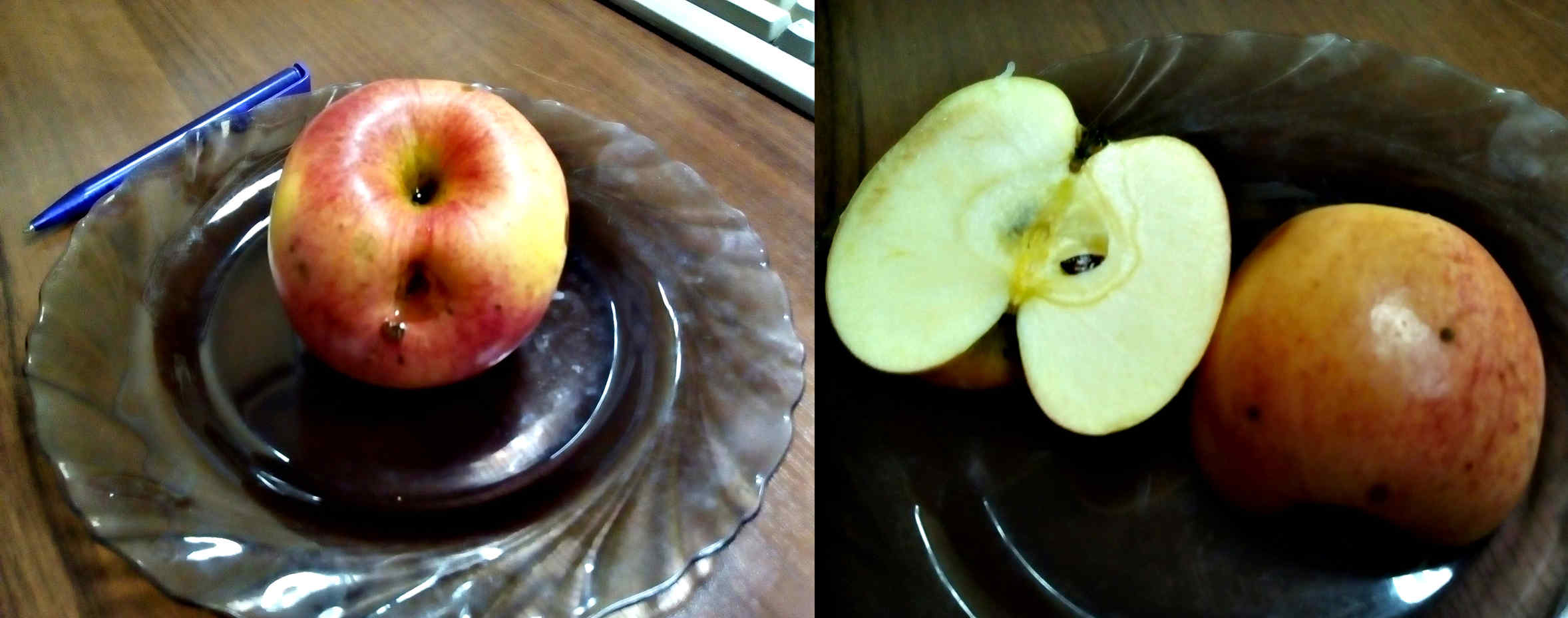 Раннезимний иммунный сорт селекции ВНИИГиСПР им. И.В. Мичурина (Прима х Бессемянка мичуринская, "брат" Былины). Яблоко крупное, приятного внешнего вида. Около месяца пролежало в неотапливаемом сарае и уже потихоньку начало портится с одного бока, что видно на срезе. Основная часть яблока оказалась не только вполне съедобной, но и произвела приятное впечатление. Мякоть желтоватая, мелкозернистая, довольно плотная, сочная, кисловато-сладкая с преобладанием сахаров. Полагаю при хранении в холодильнике смогло бы пролежать минимум до Нового года. Неплохой вариант для тех, у кого пройдет по зимостойкости.