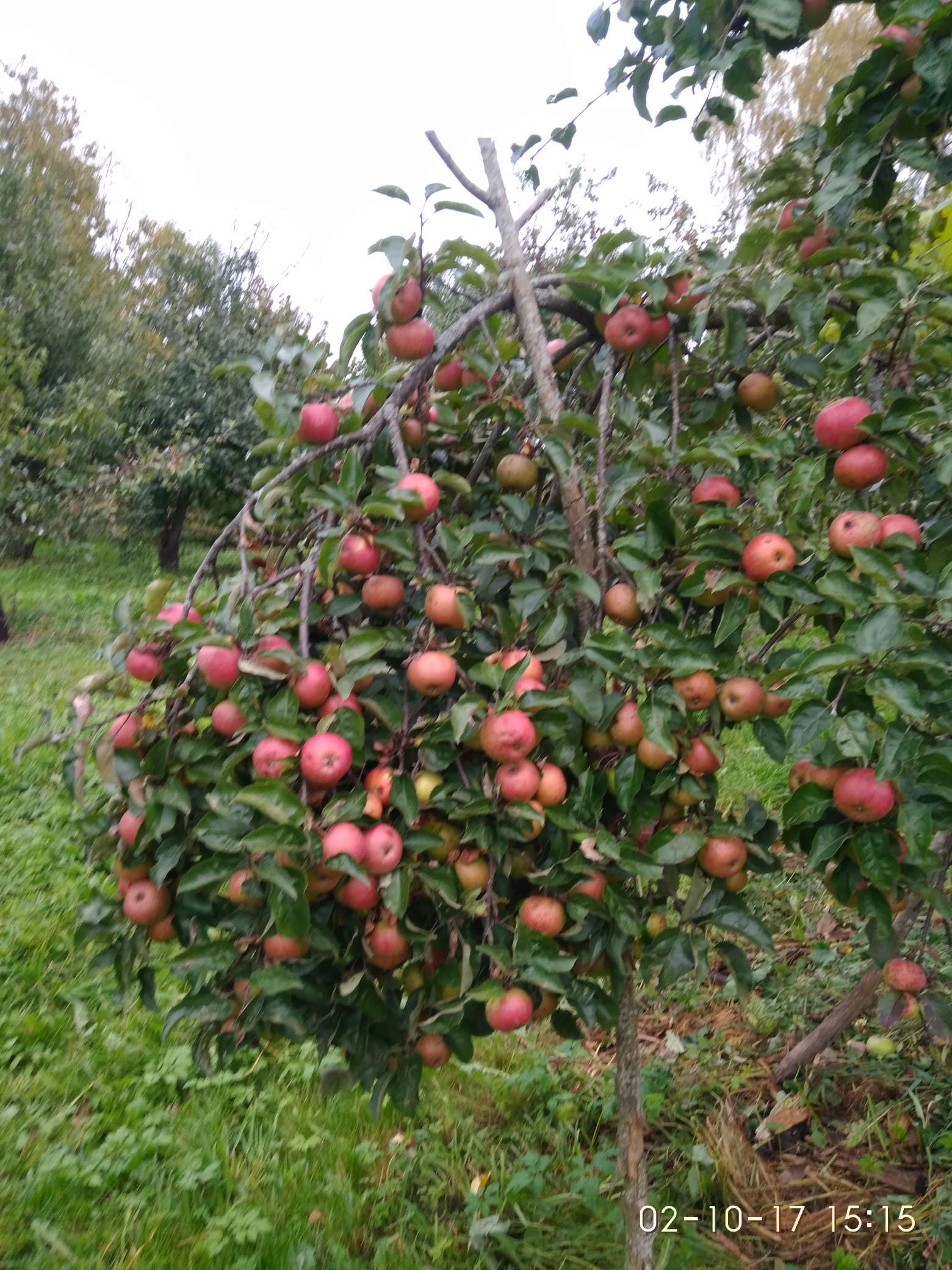 У меня Бефорест в прививках в кронах сеянцев, на которых привито по 5 - 7 сортов. Урожайность высокая - два года подряд от урожая ломались ветви. В этом году урожай был средним, чему я был рад: хоть прививки отрастут не ломаясь. Плоды разнокалиберные - есть и крупные, и средние, и мелкие. Требуется нормировка урожая. На фото Бефорест перед сбором на хранение в 2017 году. Проводил нормировку урожая в начале июля.