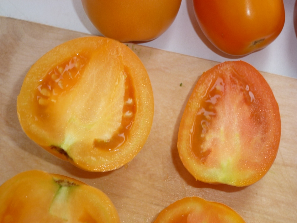 Сегодня на рынке увидела похожий томат (тот который никак не влез в литровую банку), спросила, что "Это?". Ответили "Бычье сердце", хороша пересортица - вместо "Золотого сердце" "Бычье"...