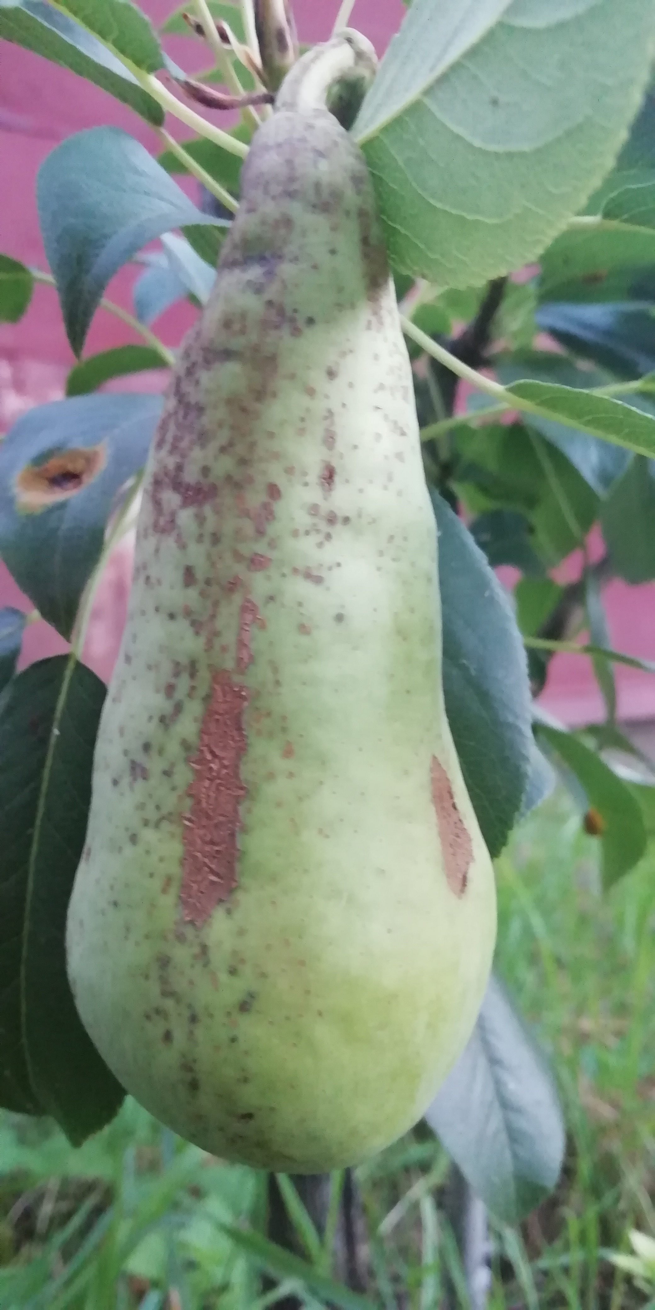 В этом году большинство груш получило оржавленность по всей поверхности, что негативно сказалось на форме и размере.