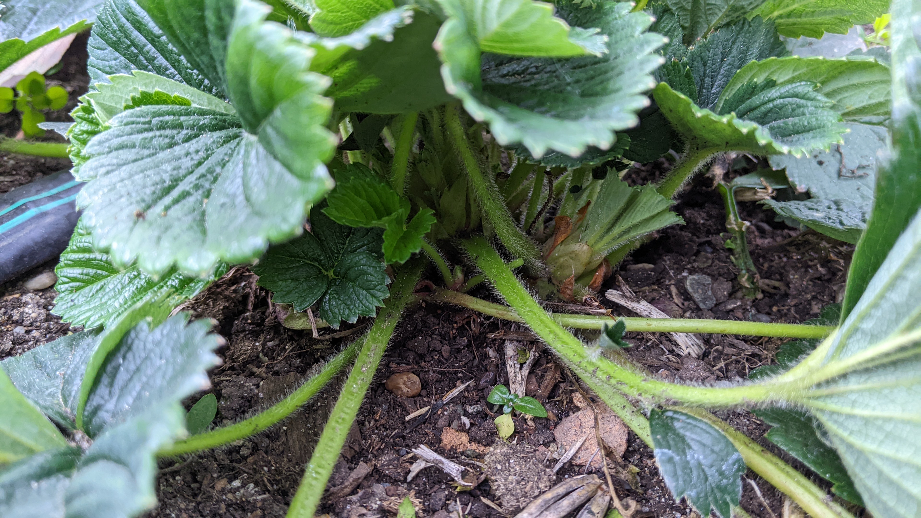 Посадил неск. саженцев клубники под 33 гр. жары. Неприятно клубнике и садоводу - пришлось притенять.