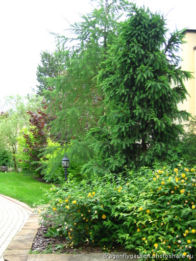 Элен!!! А мне и такой кустик нравится. Рядом растут хвойные и декоративнолистные. Шишечки отвлекают взгляд. См. фото выше. Вот ещё фото того места.