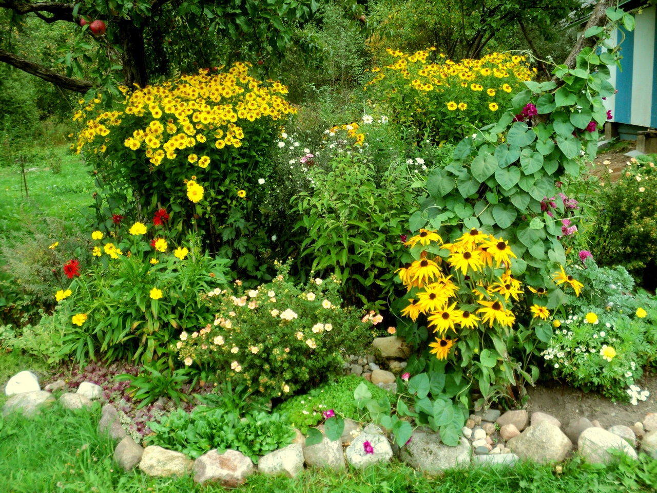 Флоксы (на переднем плане) убираются полностью. И получается, что жёлтое ни к чему...