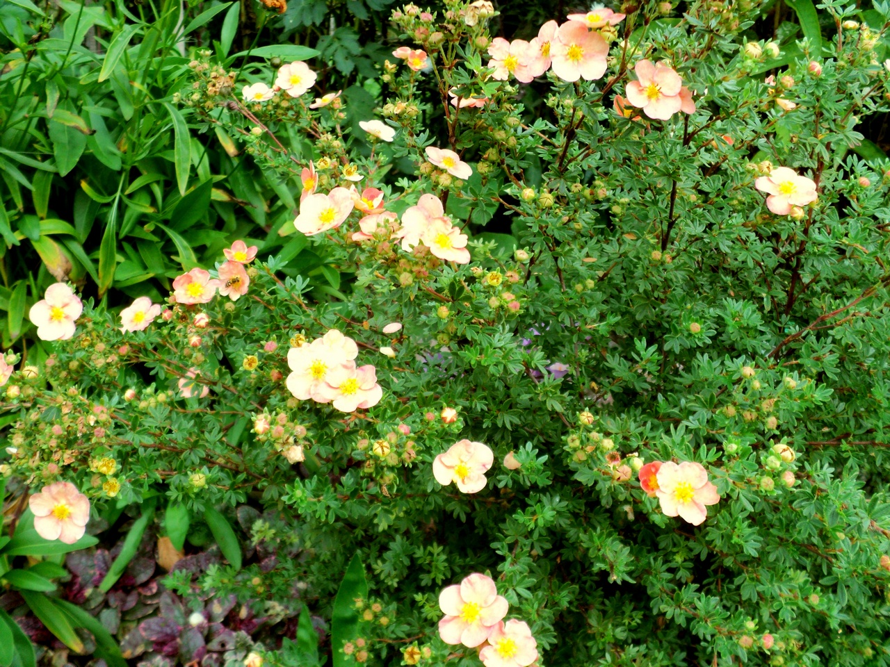 А вот лапчаточку люблю!!! Слегка стригу её для аккуратности куста. У меня Голдфингер - ярко жёлтая такая труженица-трудоголик, только к концу лета затихает цветение. Вот тут видно, что одни отцветочки остались, а цветов уже мало и вторая весьма странная - как *цензура* меняет цвет: то бледно-жёлтая, то бледно-розовая. Вроде к осени розовеет
