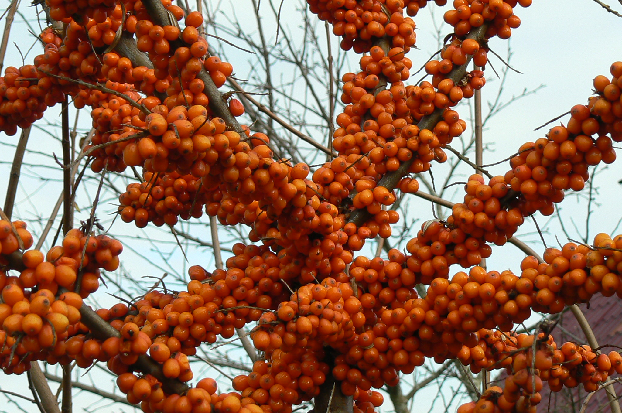 . Посмотрела в инете. Действительно,очень красиво с ягодами без листьев. Облепиха была у нас в старом доме. Посажена на горке,где вроде никому не мешала. Но появлялась там,где не надо. И продраться сквозь нее
