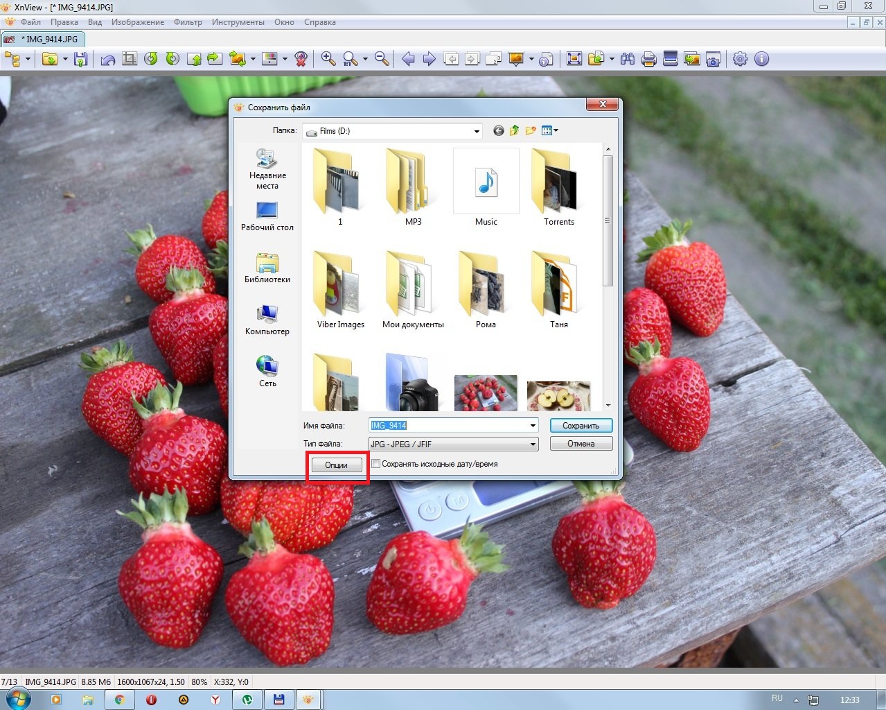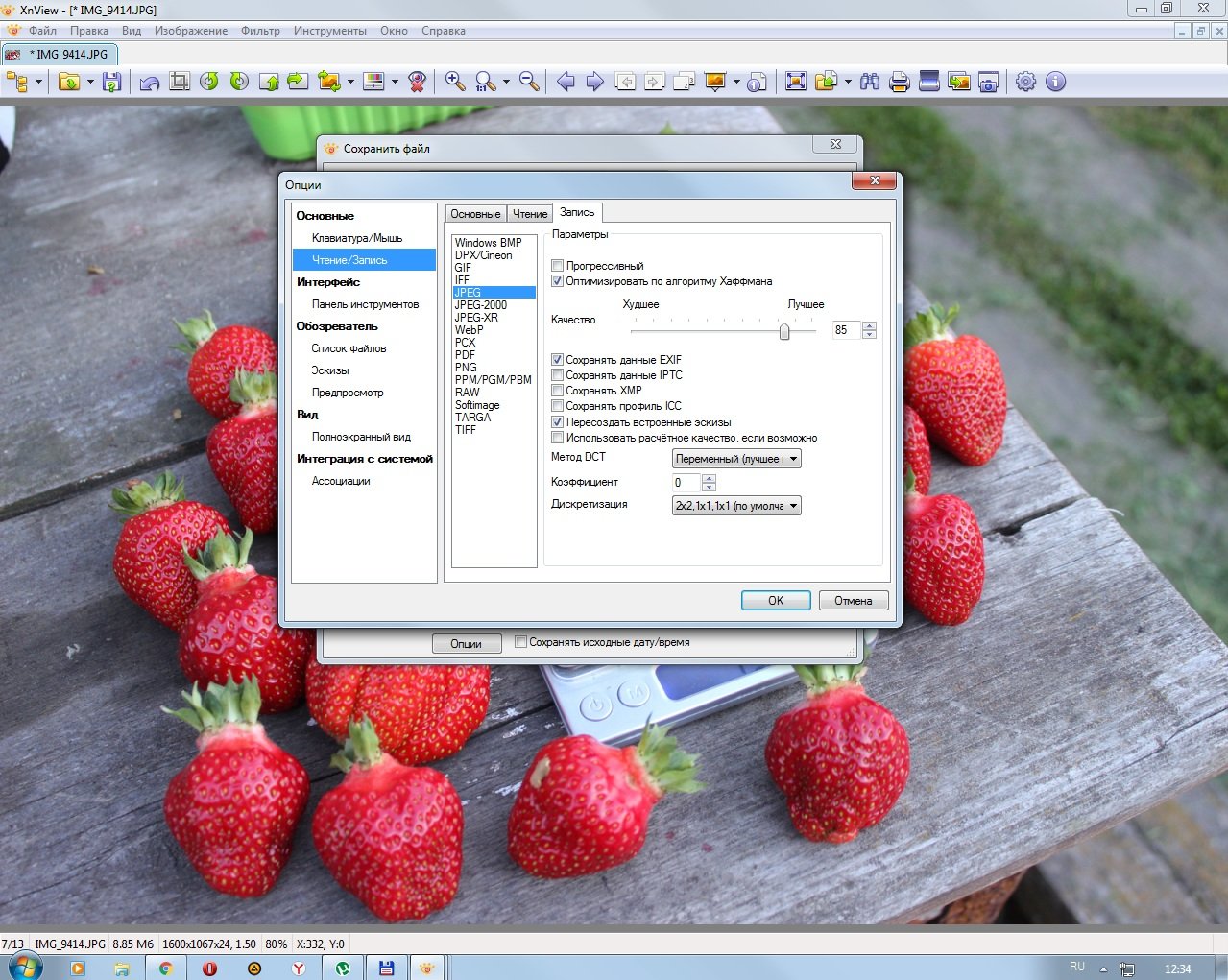 6. Жмем кнопку Сохранить как (выделил красной рамкой) В появившемся окне жмем кнопочку Опции В меню Чтение/Запись во вкладке Запись выставляем настройки как на скриншоте и жмем OK. Выбираем место для сохранения и жмем Сохранить На выходе получаем файл прилично уменьшенного размера. Размер - самое то для форума. При использовании онлайн-сервисов размер получится примерно вдвое больше.