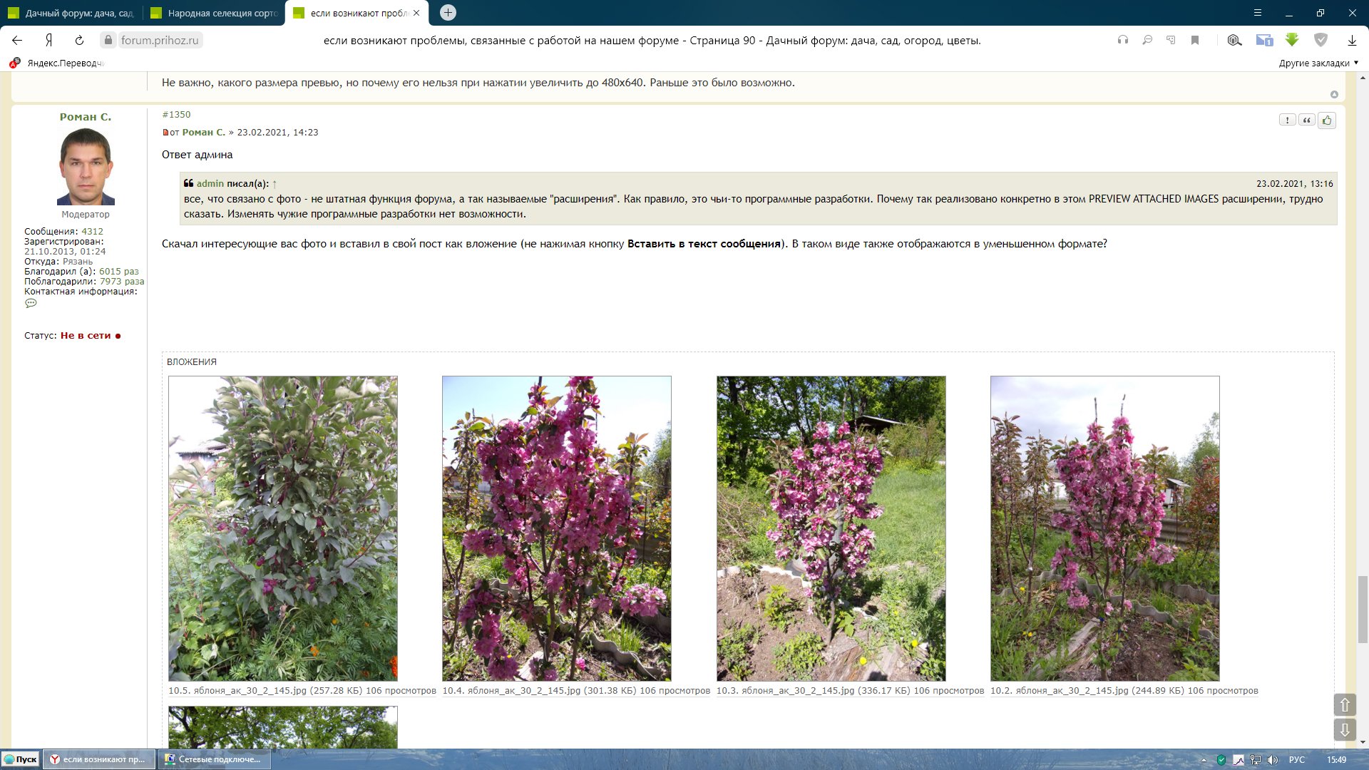 Скачал интересующие вас фото и вставил в свой пост как вложение (не нажимая кнопку Вставить в текст сообщения). В таком виде также отображаются в уменьшенном формате?admin писал(а): ↑23.02.2021, 11:16 все, что связано с фото - не штатная функция форума, а так называемые "расширения". Как правило, это чьи-то программные разработки. Почему так реализовано конкретно в этом PREVIEW ATTACHED IMAGES расширении, трудно сказать. Изменять чужие программные разработки нет возможности.