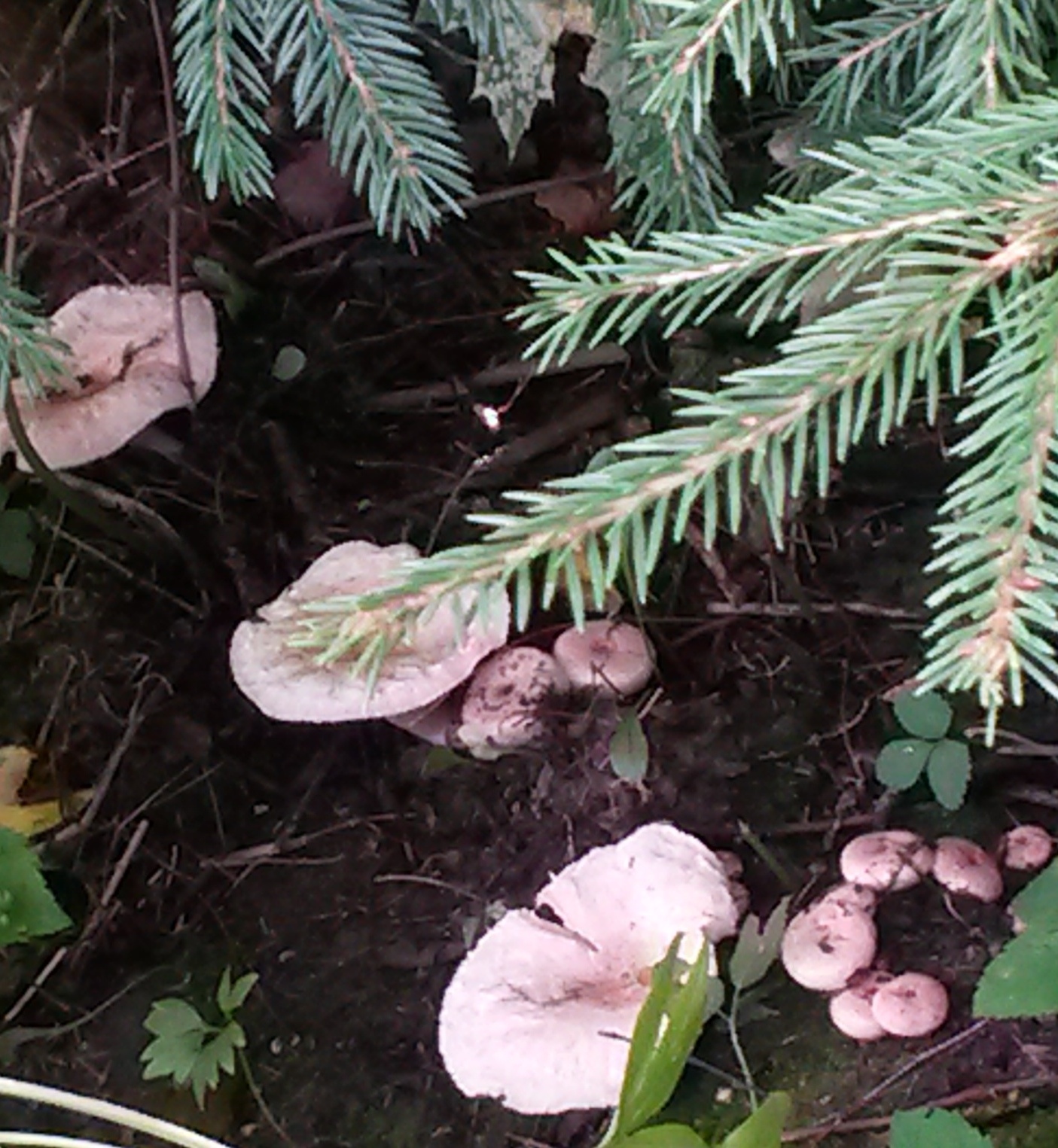 В принципе там растут две ёлочки и берёзка, которые мы с мужем ещё принесли из леса махонькими. Уже прошло около 14 лет. Я вообще туда лила всегда воду из под грибов, что мыла и все отходы грибные кидала. Но это было давно и появились вот года три как, причём одни волнушки.
