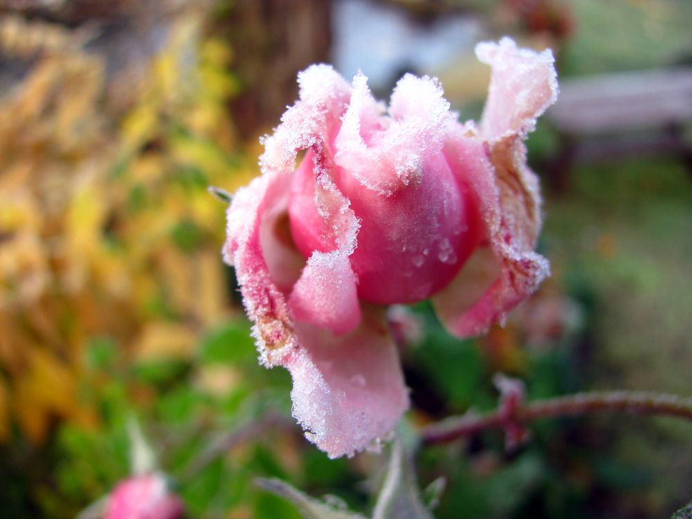 Не выдержала... укрыли все розы, успели до темноты. Земля уже прилично так замерзла, сегодня нужно было еще одну дужку для розы воткнуть, так муж заколотить ее не смог. Интересно...туи все инеем покрыты, даже после обеда.