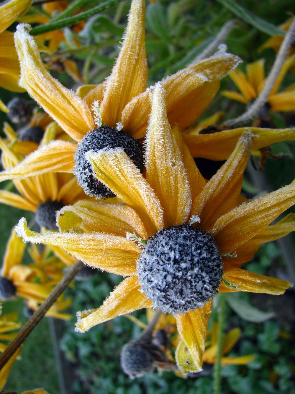 Градусов до -5° он еще терпит мороз , а ниже становится как стеклянный , при малейшем шевелении стебли ломаются