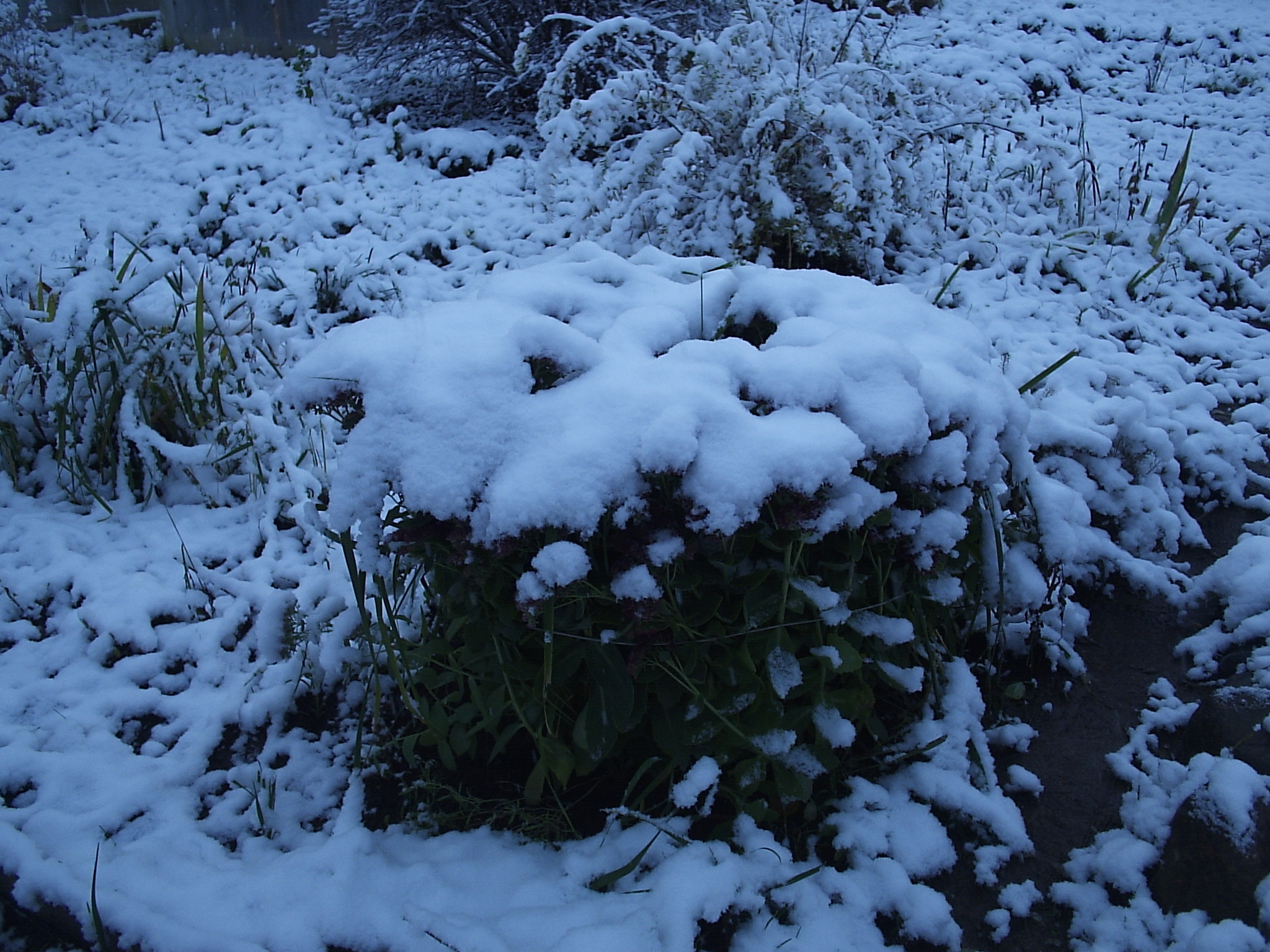 После обеда пошел снег большими хлопьями. В шесть часов вечера уже темнотища и -1 градус. Боюсь, что опоздали с укрытием роз - очень не хочется по снегу ползать.