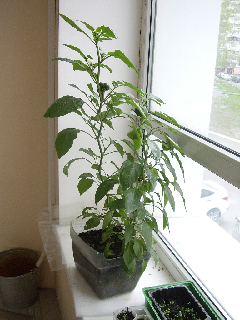 Высадила вчера перец в теплицу. Совсем уже большой стал. А сегодня, как и полагается, мороз -2. Прыгала с укрывным вокруг них, утром гляну чего будет.