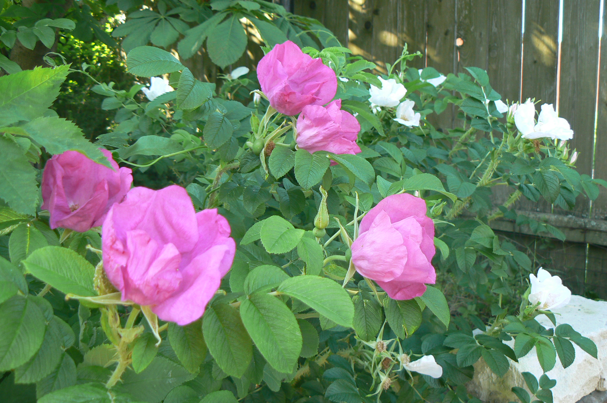 Третья. Если самая левая в верхнем ряду - Rosa glauca или R.rugosa, то готовься вырезать в спирее отпрыски. У меня так было.