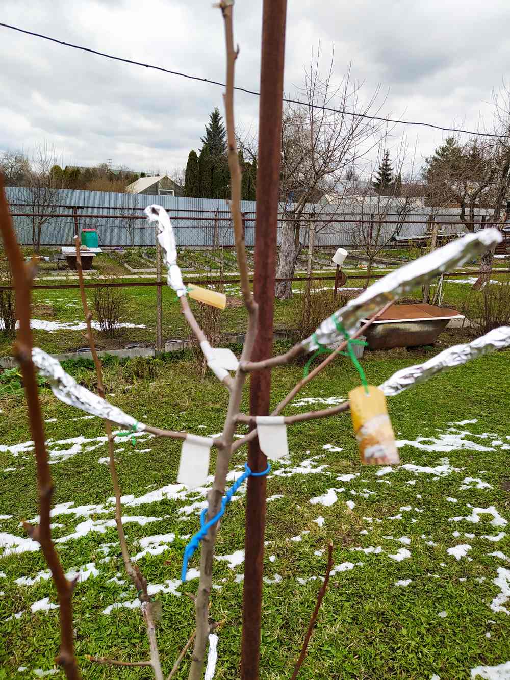 И ещё, лучше всего прижились те копулировки, что были в пакетах, там уже почки распустились. Чуть хуже - те, что были в фольге. Те, с которых ветром посрывало фольгу, то ли ещё просто не проснулись, то ли не прижились.
