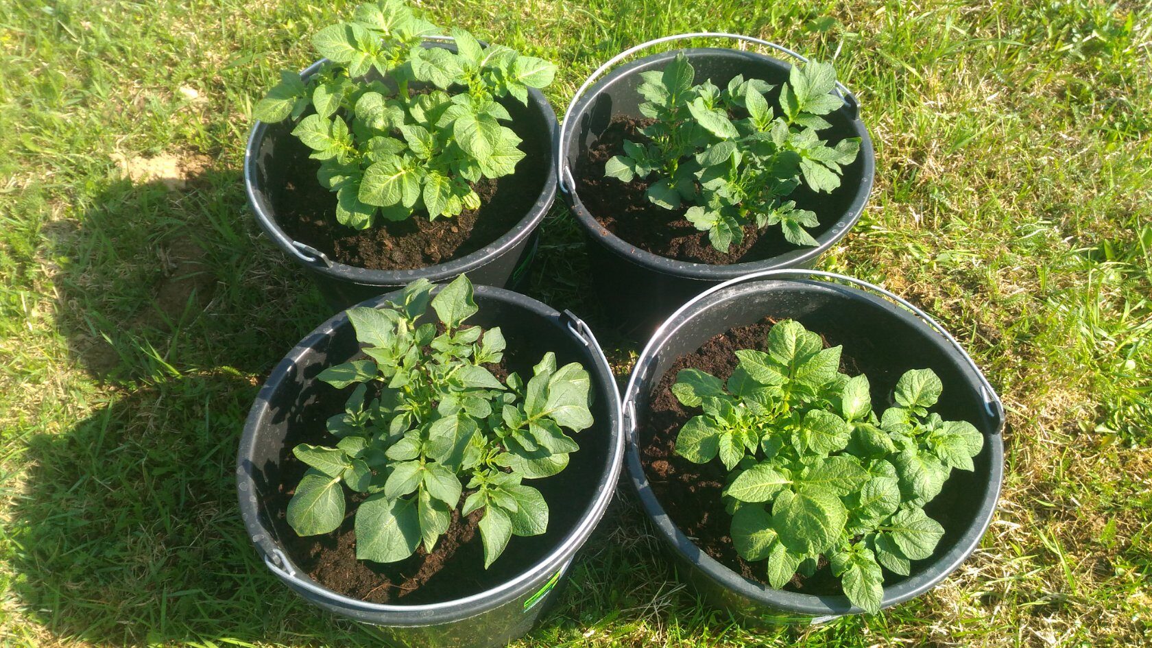 Выращиваю картошечку в контейнерах, сиречь пластиковых 20 литровых ведрах с торфо-песчанной смесью.