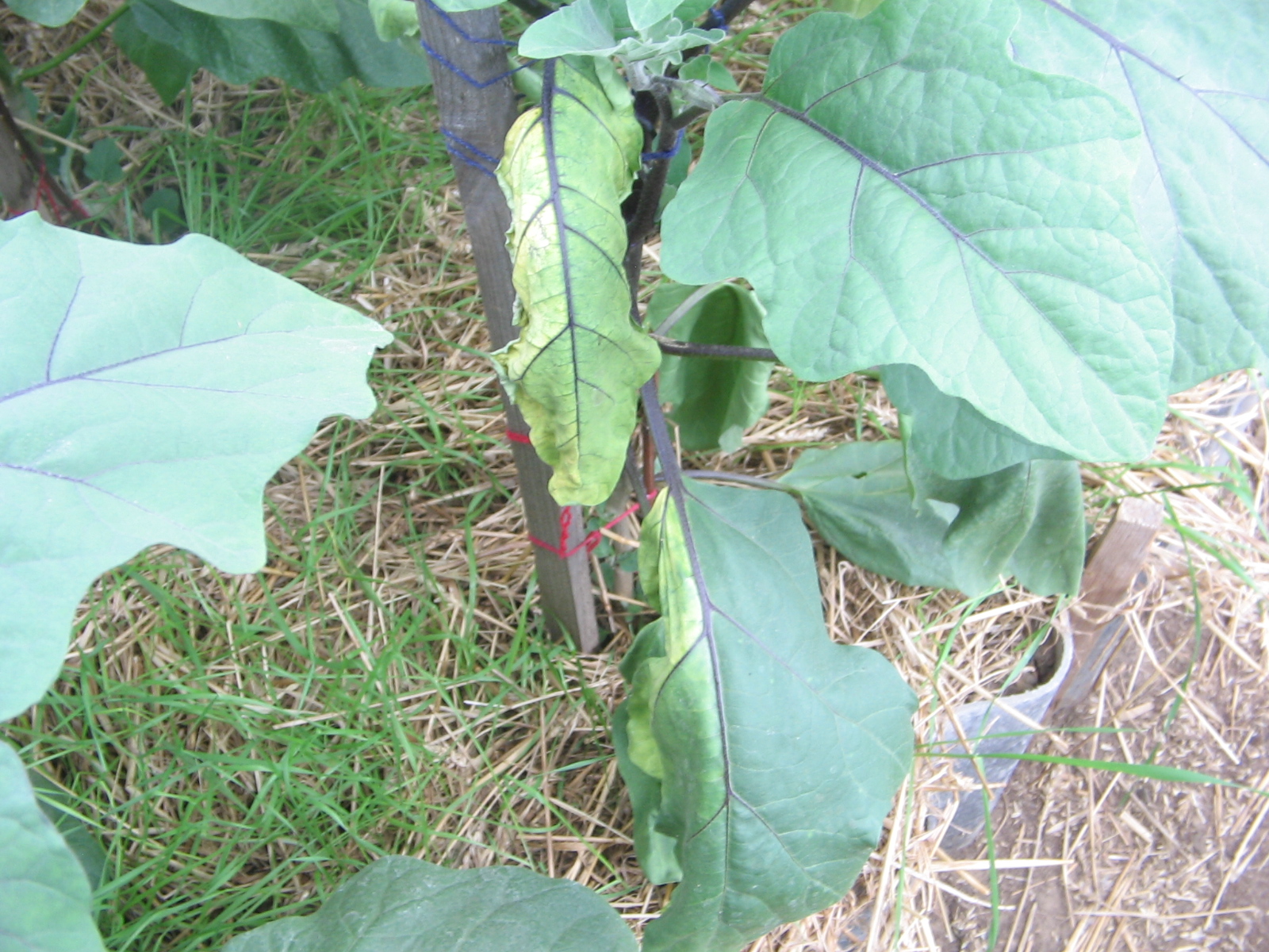 Оля спасибо(взаимно). Вилт это сокращенно вертициллезное увядание(с утра не сразу выговоришь). Это патоген грибной породы. В инете о нем можно более подробно. Баклажан к нему очень неустойчив. .Если коротко, то его мицелий проникая в растение в области корневой шейки и поврежденных корней заселяет сосуды ксилемы по которым поднимается вверх по сосудам . Забивая сосуды он препятствует нормальному снабжению растения водой и питвеществами. Основные симптомы -одностороннее пожелтение , начинающееся с листьев нижнего яруса, скручивание листьев и общее увядание. Вот у меня несколько фоток моих поврежденных баклажанов . На первом фото видны листья у которых это самое одностороннее пожелтение и увядание(одна часть листа пока еще нормальная, а другая практически вся уже пожелтела и увяла). На втором фото поперечный срез ствола баклажана около корневой шейки. В нижней части сектора среза( сразу под корой образно говоря в районе " 6 часов" ) виден потемневший ореол проводящих сосудов забитых мицелием патогена.Ольгуня писал(а):Грант, очень приятно Вас видеть на форуме!